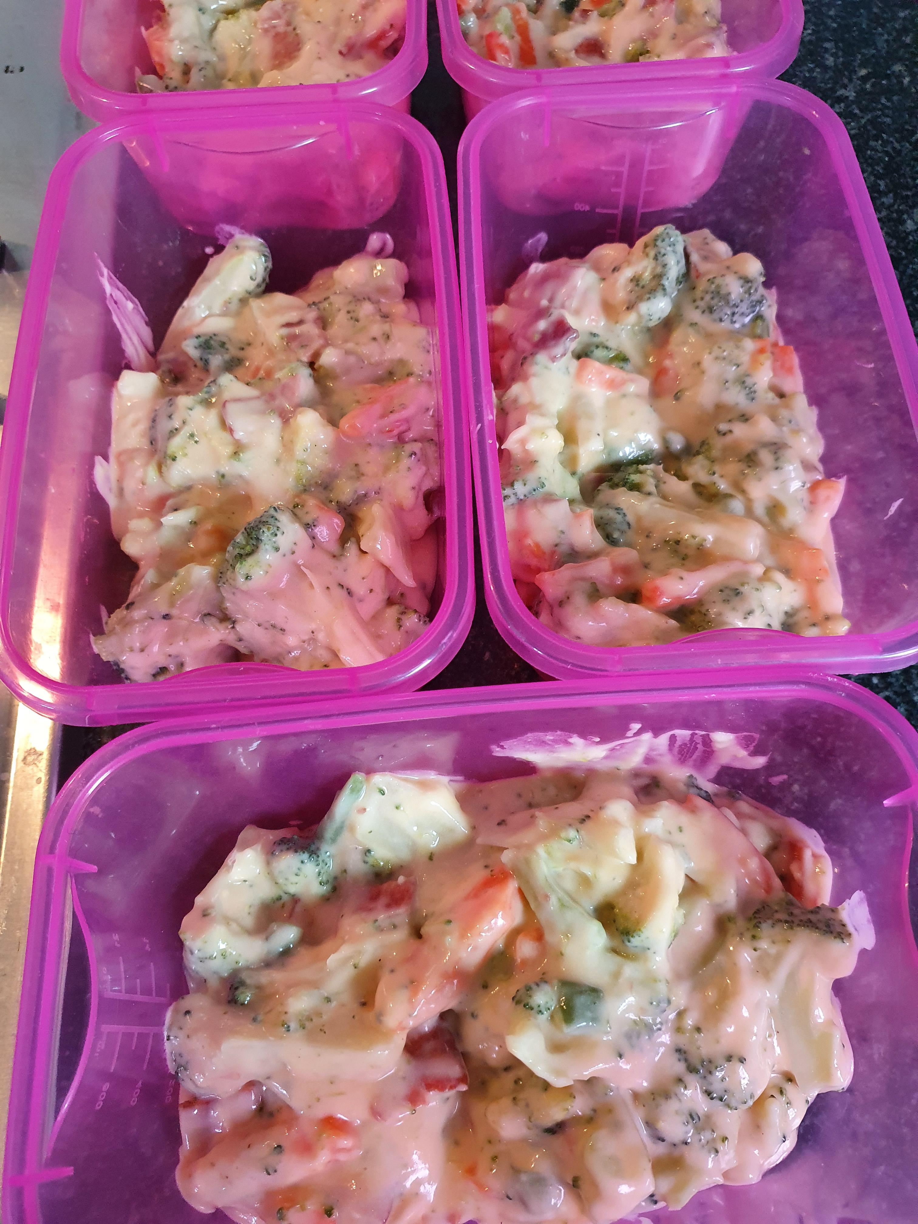 Cheesy Broccoli and Turkey Bacon (I want to say) Salad – 230 calories and 14g protein per serve by SusuTheConqueror Write A CommentYou must be logged in to post a comment.