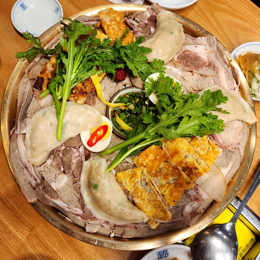 Suyuk jeongol and Pyeongyang-style naengmyeon at a North Korean-style restaurant in Bundang, Gyeonggi-si
