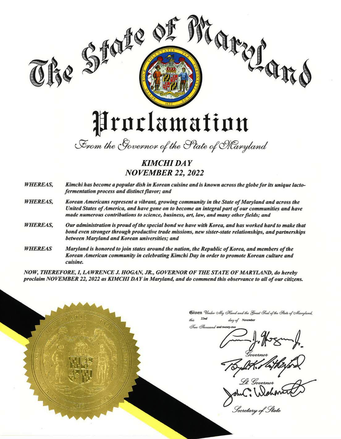 November 22nd is now Maryland Kimchi Day!by mrgarlic5 Write A CommentYou must be logged in to post a comment.