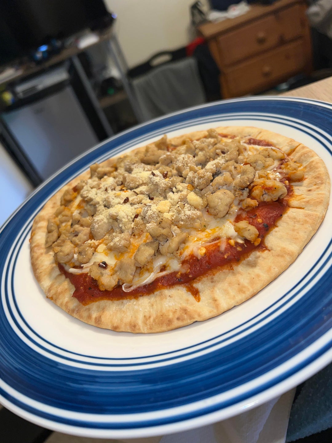 The highlight of my day, add the sauce and pre-cooked chicken to the pita, along with cheese and seasonings. Bake at 350f 15-20 minutes. Enjoyby Dominic712 Write A CommentYou must be logged in to post a comment.