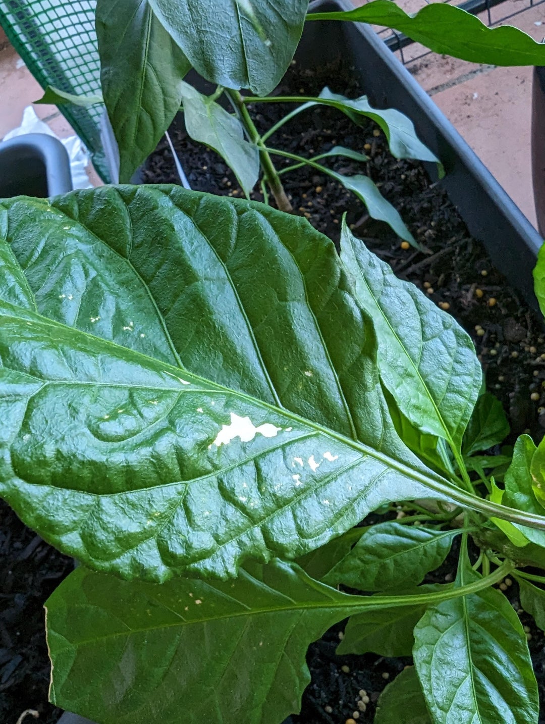 I have 2 other plants in there (ghost peppers and a standard Mexican chilli which is in the same pot) that show no signs of this affliction.