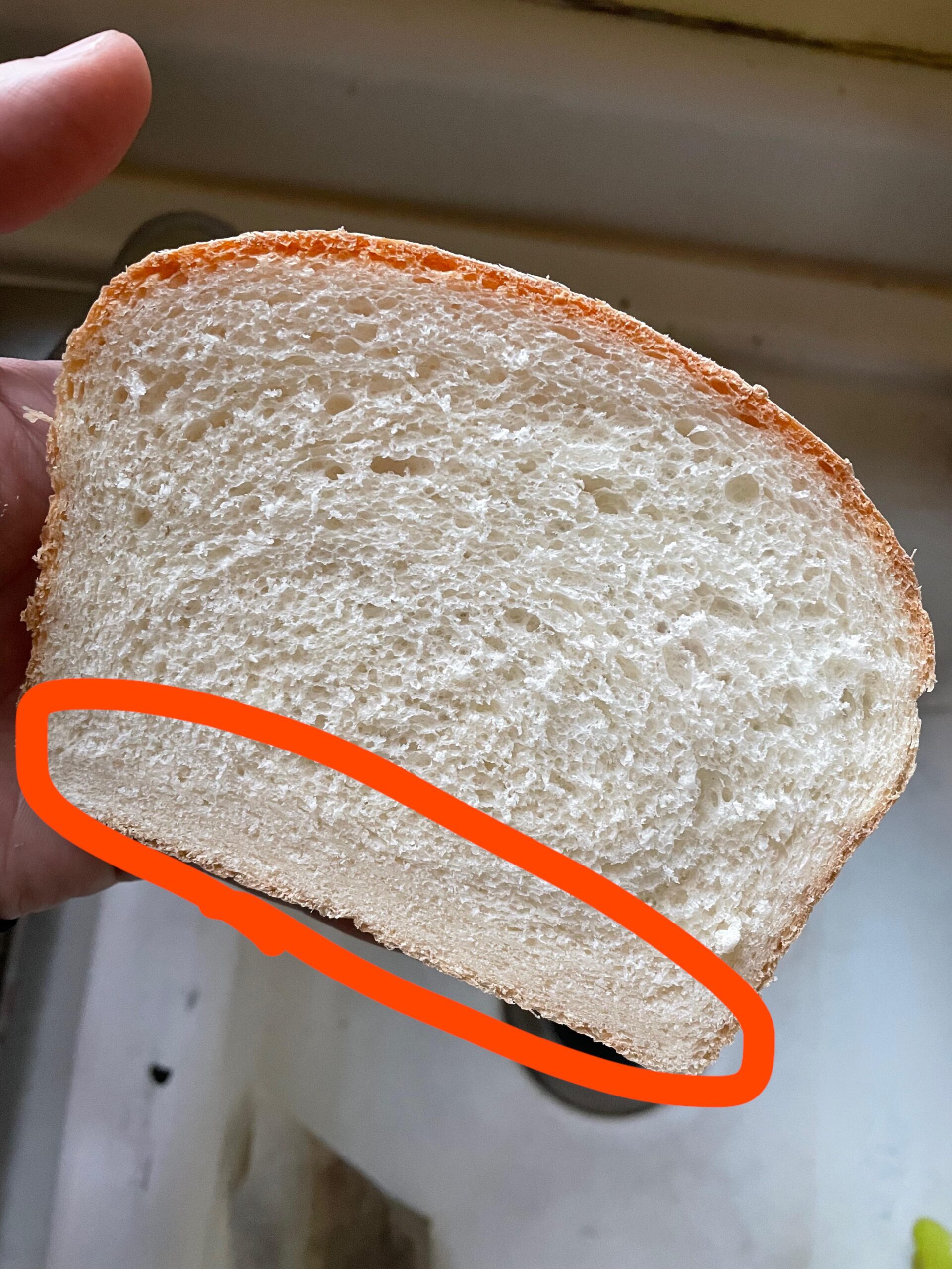 Hi all, I usually make loaves from FWSY and decided to start branching out into other loaf types. I made this sandwich loaf last night which looks great _except_ for the bottom of the loaf. The crumb looks like it didn’t really expand. Is this a sign that the loaf was under proofed?