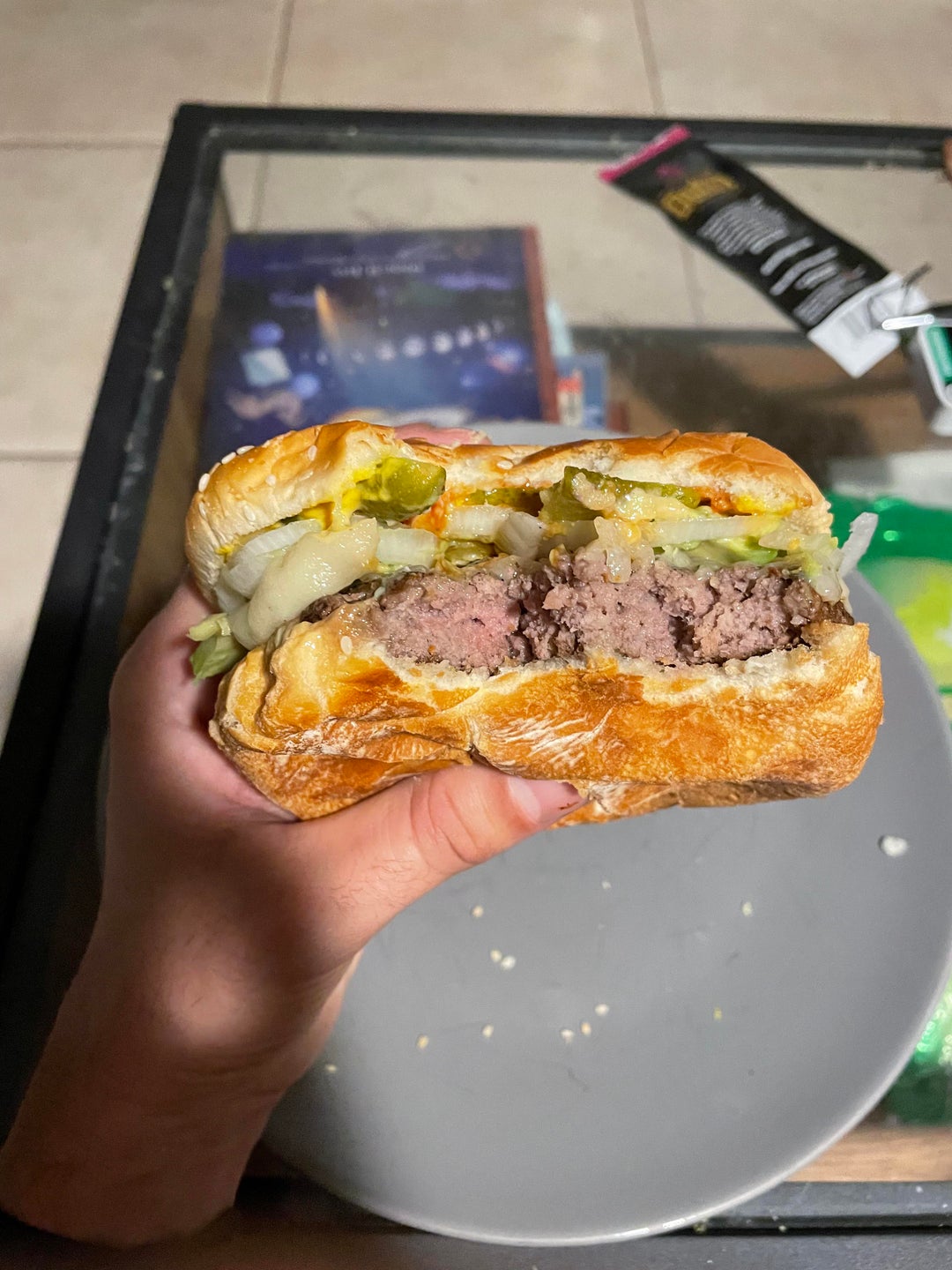Made a cheeseburger with avocado, pepper jack, pickles, onions and special sauceby yomitz Write A CommentYou must be logged in to post a comment.