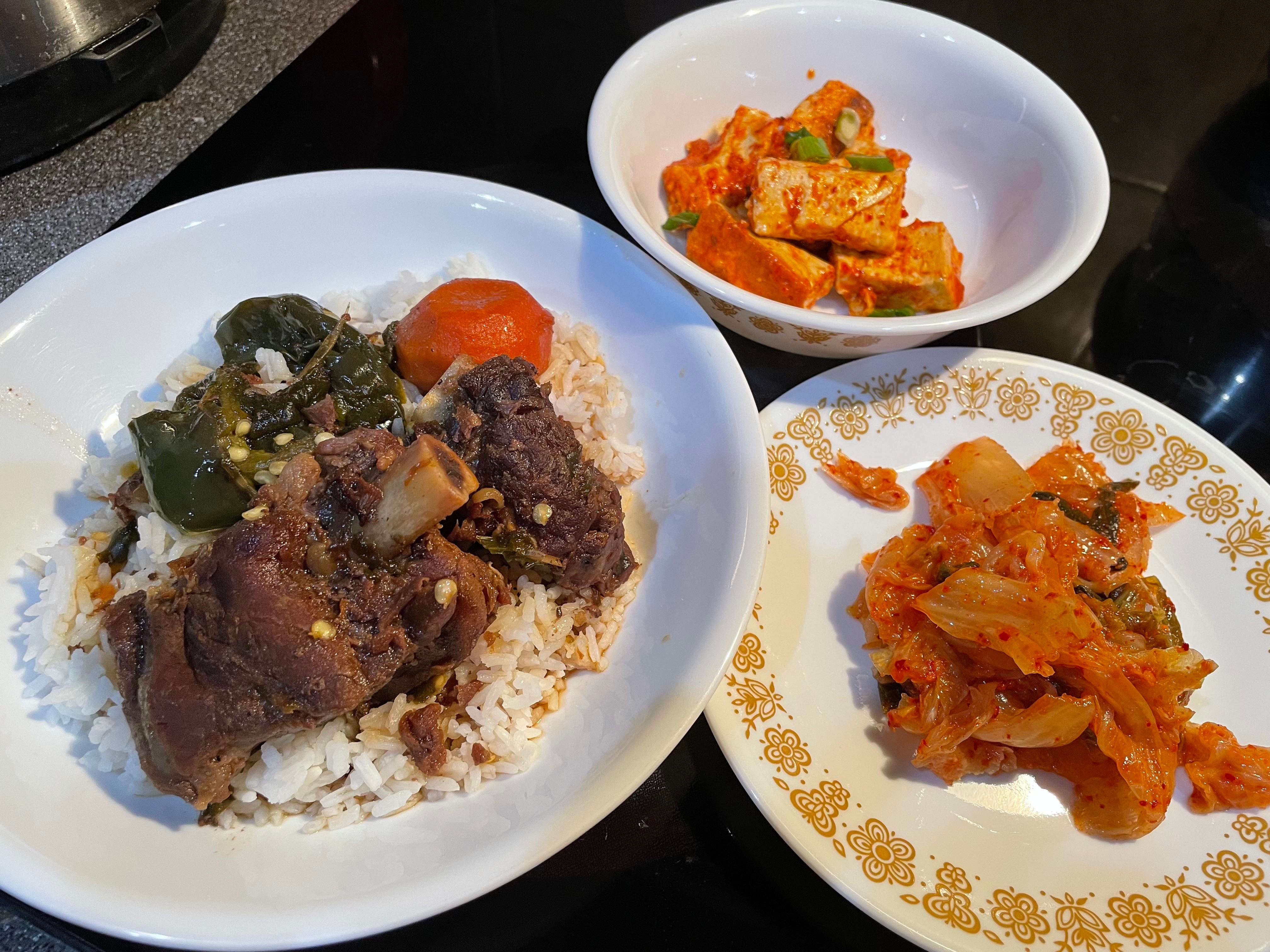 Galbi-jjim, seasoned bean curd and kimchi from Zion Market. Fairly inexpensive.by iluvpacey 1 Comment teatime_yes_pls 3 years ago Damn that tofu looks deliciousWrite A CommentYou must be logged in to post a comment.