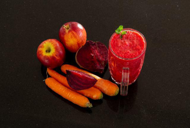 1. Chop the Apple into small pieces and remove the seeds. Peel beetroot and carrots and cut them into small cubes.