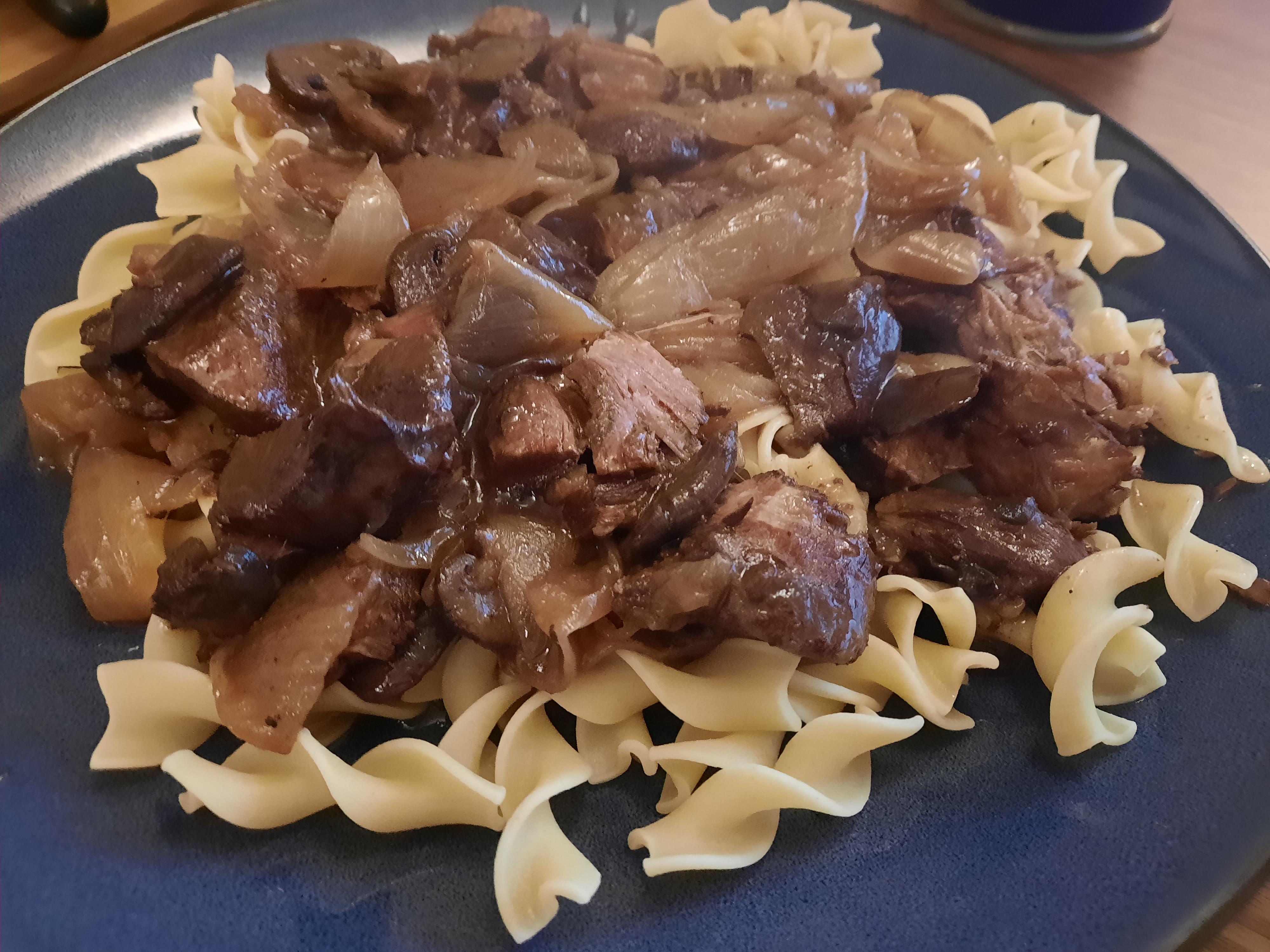 go_ninja_go 3 years ago https://www.food.com/recipe/crock-pot-beef-with-mushroom-and-red-wine-gravy-272308I think I have a different idea of what makes a medium onion than the person who made the recipe, so I will probably use something smaller next time or maybe even pearl onions. It was good though.