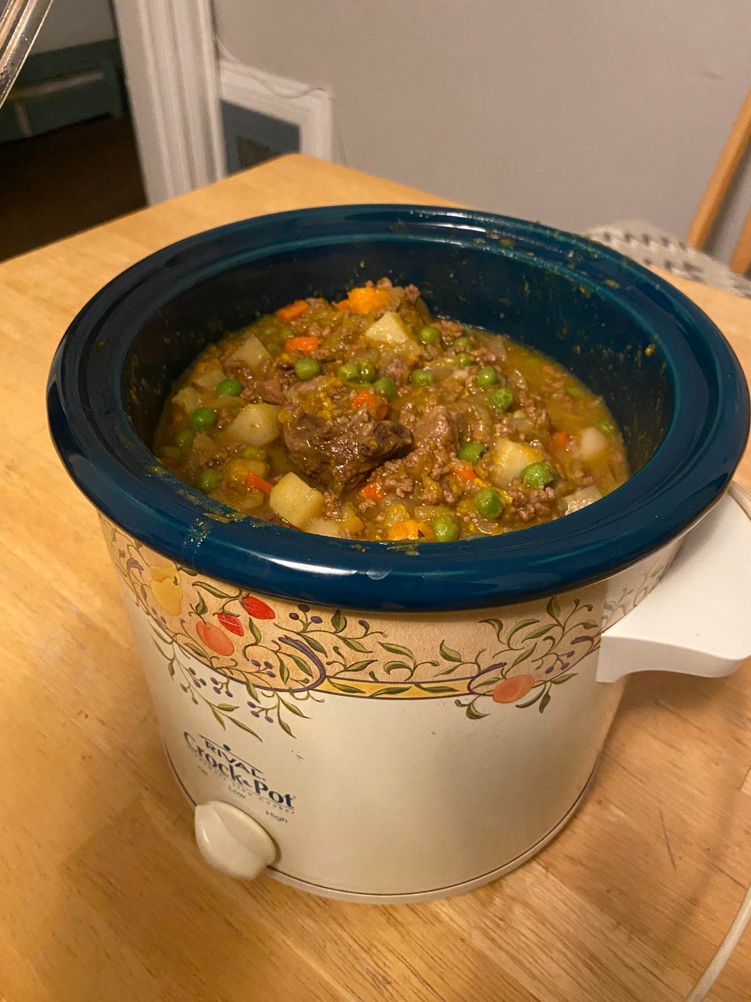 Beef stew 3023by 3cheers4nantucket 2 Comments 3cheers4nantucket 3 years ago Recipe: 5 or so hours on high1 pound ground beef1 pound stew beef2.5 cups beef broth1 big onion4-5 cups potatoes (mix of sweet and russet)2 cups butternut squash dicedCup of carrotsSplash of peasThymeRosemary Appropriate-Battle32 3 years ago Let me know if it spills overWrite A CommentYou must be logged in to post a comment.