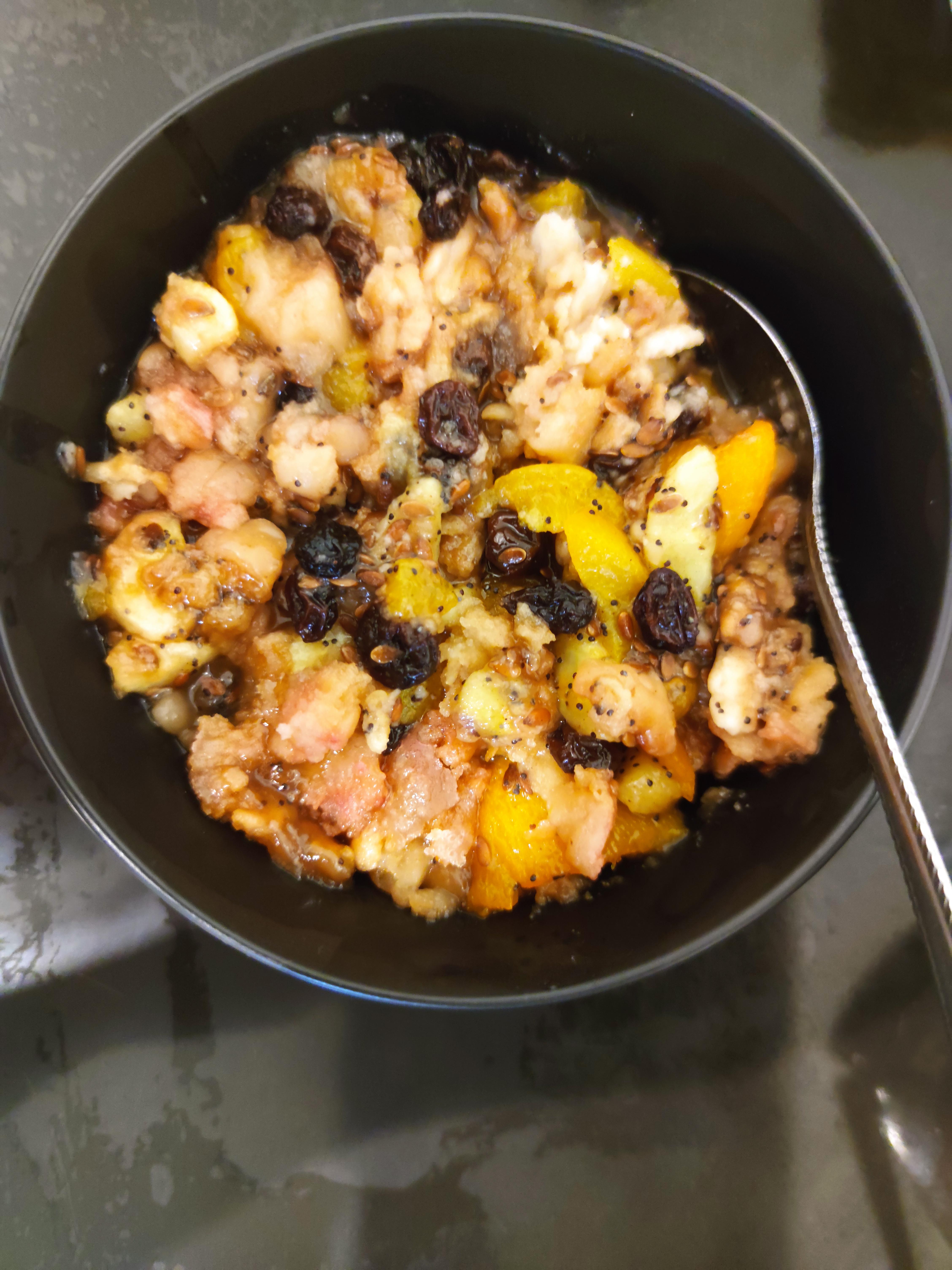 Apricot & Banana Crumbleby foxvipus 1 Comment foxvipus 3 years ago RECIPE (using 1.5Litre Slow Cooker)This was set to high for only 40 minutes.It consists of a fruit mix with a biscuit mix layered over top whilst cooking. Then obviously a jumble when served up as you can see.Fruit Mix½ Can of Apricot Halves sliced 1 Banana chopped up Sultanas, about a handful Cinnamon, Poppy and Flax SeedBiscuit Mix7 plain Vanilla Biscuits Juice from Apricot Tin Brown Sugar Nesquik Strawberry powder A little WaterWrite A CommentYou must be logged in to post a comment.