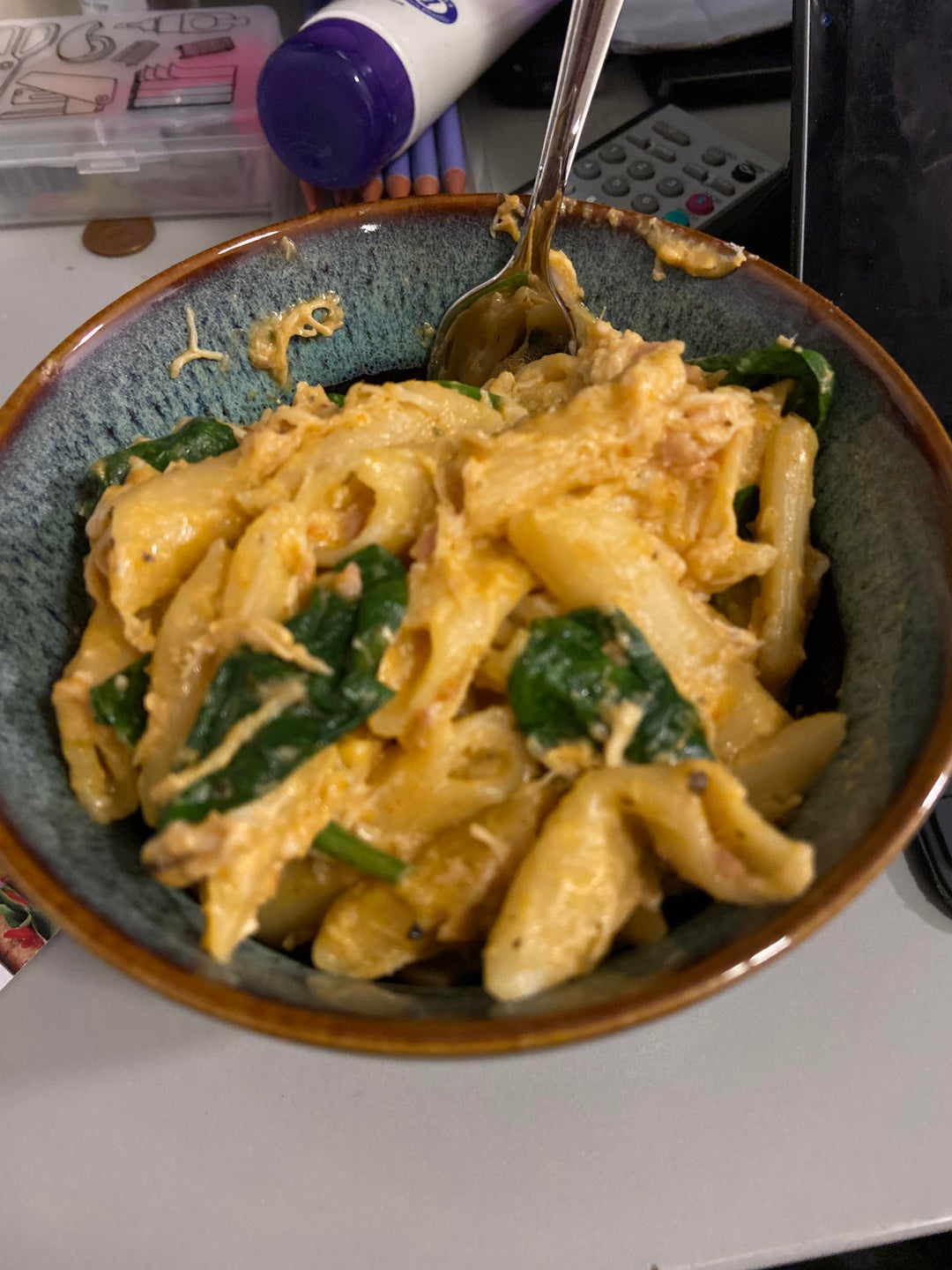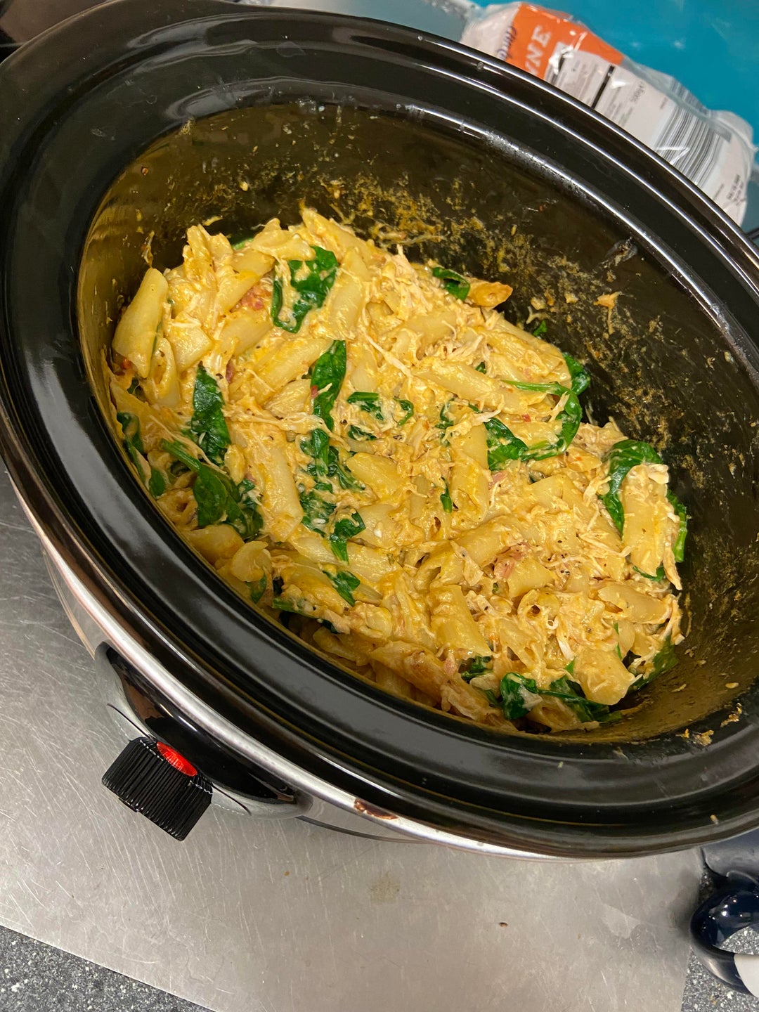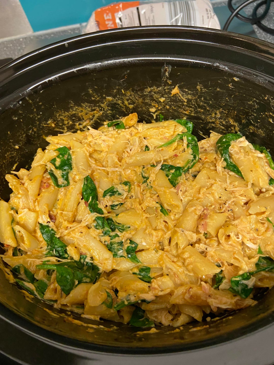 I got a slow cooker in September and my go-to now is Creamy Chicken Pasta (with spinach)!! It tastes so much better than the pictures make it look ๐