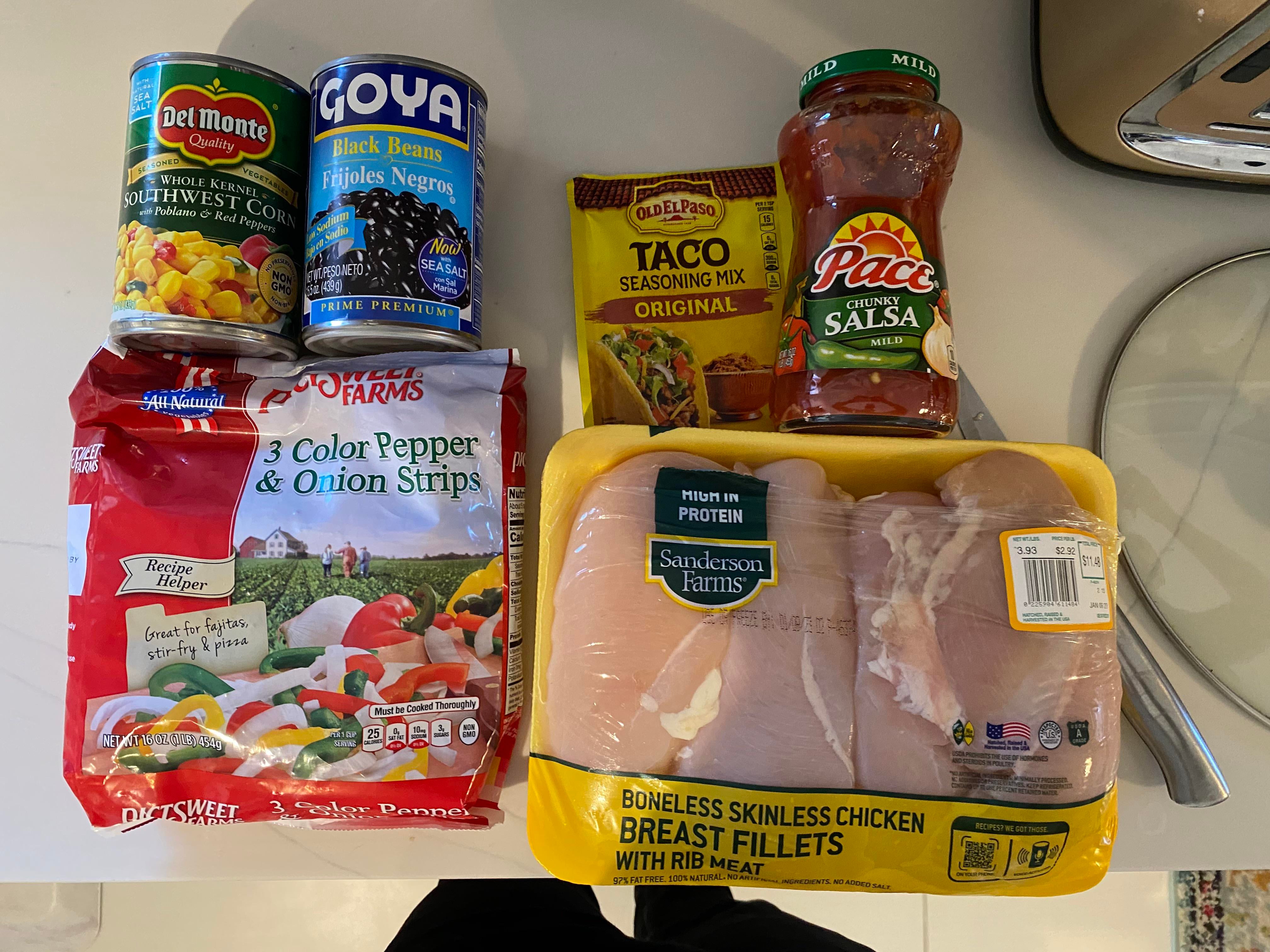Been lifting weights and this is my tasty and easy way to get protein in. Helps me add muscle and lose fat. Usually eat with brown rice and some avocado. Feeds me for about 5 days. About 6 hours on high and then shred the chicken.