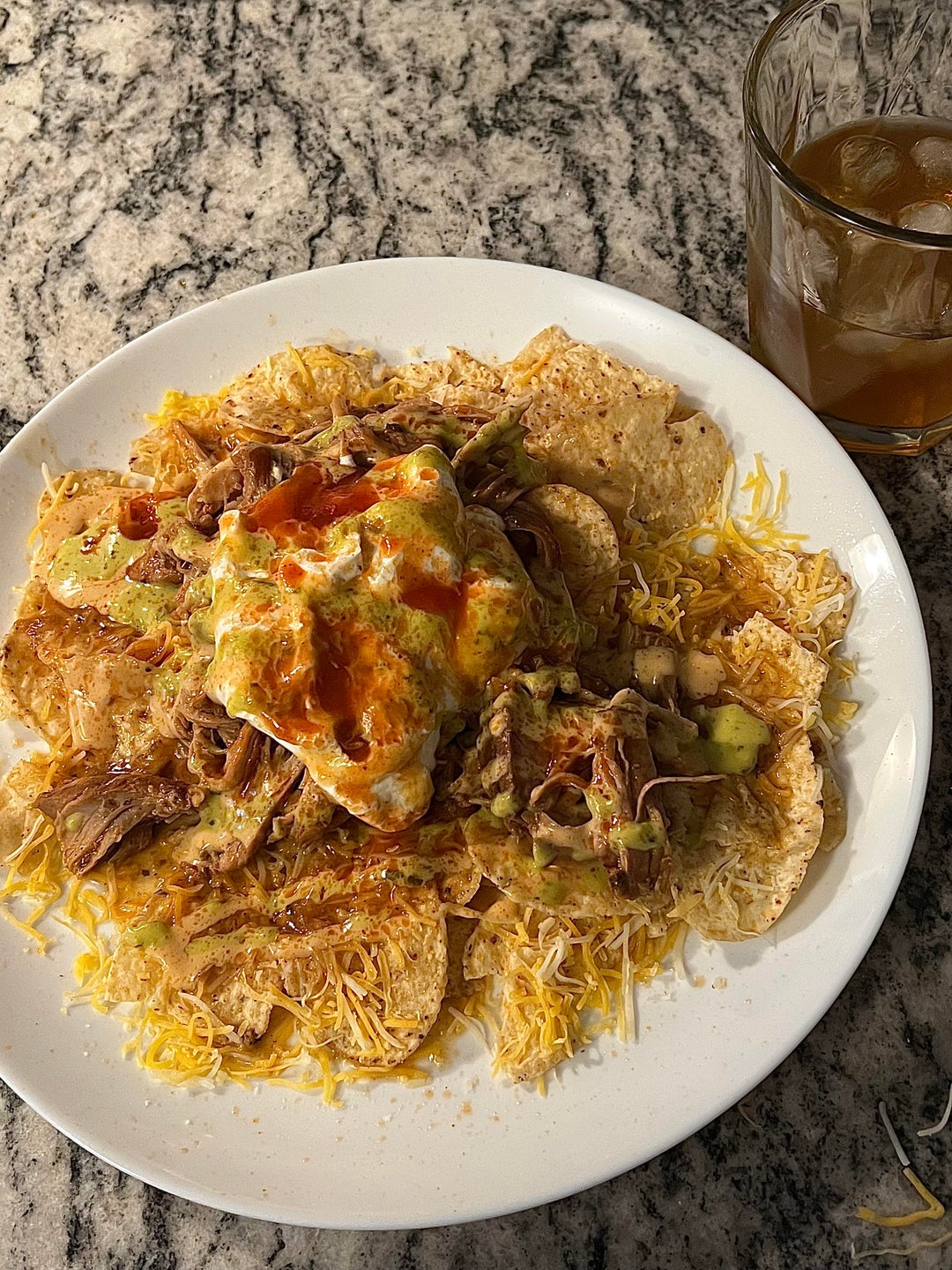Pork Nachos.. don’t want to toot my own horn but damn was this good….