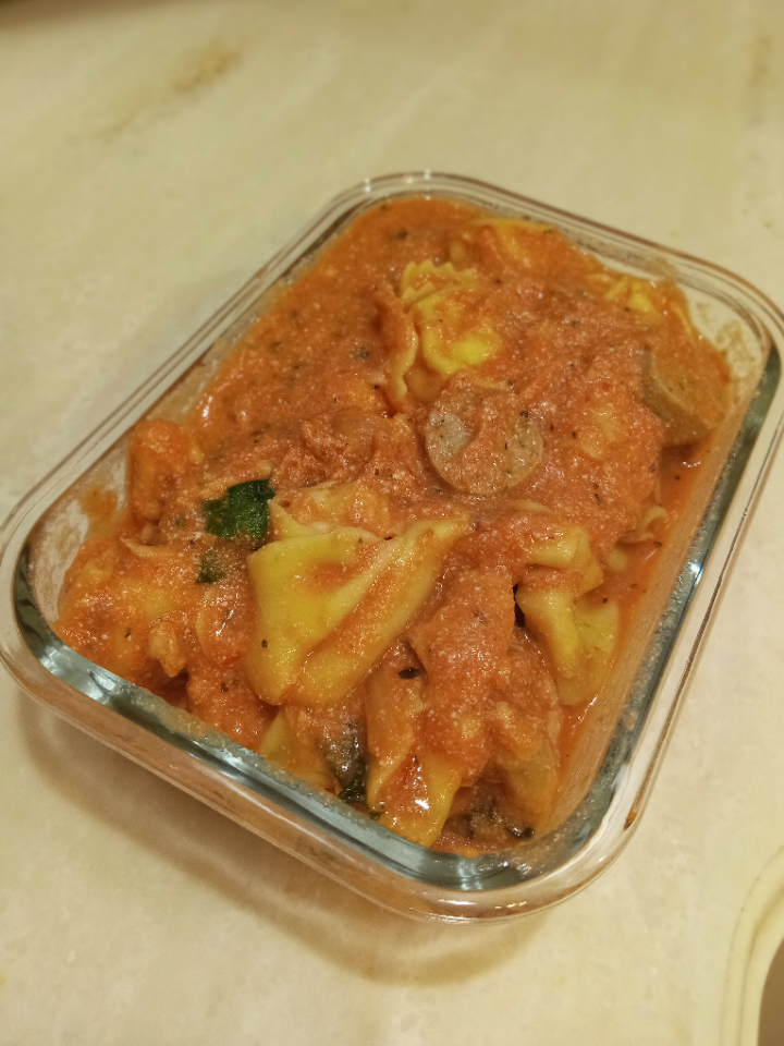 I subbed out the petite tomatoes with crushed tomatoes. Used pesto chicken sausage. 10oz of ricotta instead of heavy cream. 2 huge handfuls of spring mix and way to many tortellini. It made a great sauce!
