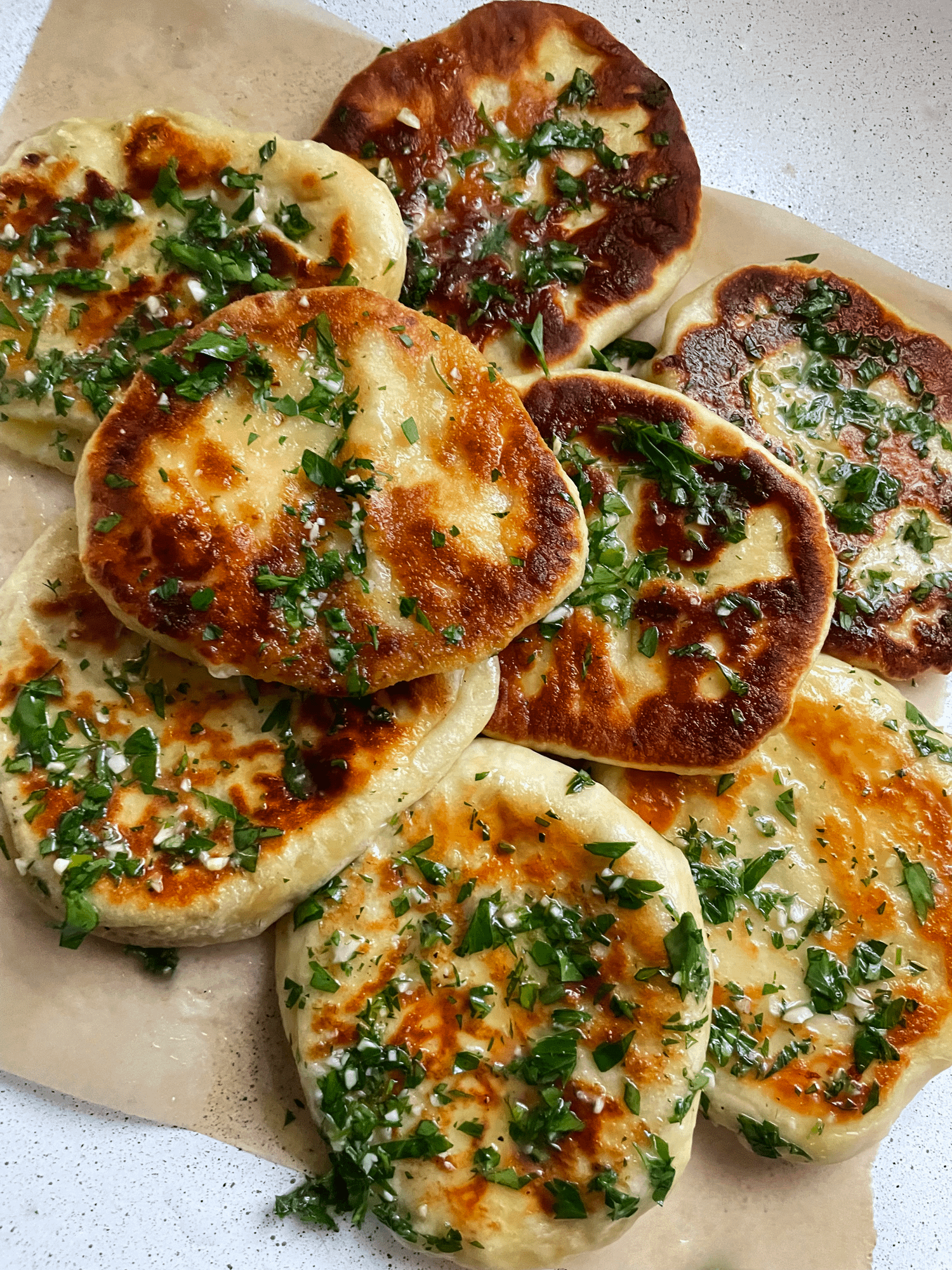 I followed [Moribyan](https://moribyan.com/cheese-stuffed-garlic-naan/) recipe. I used mozzarella, provolone, and parmesan for the cheeses. No complaints, they were very delicious.