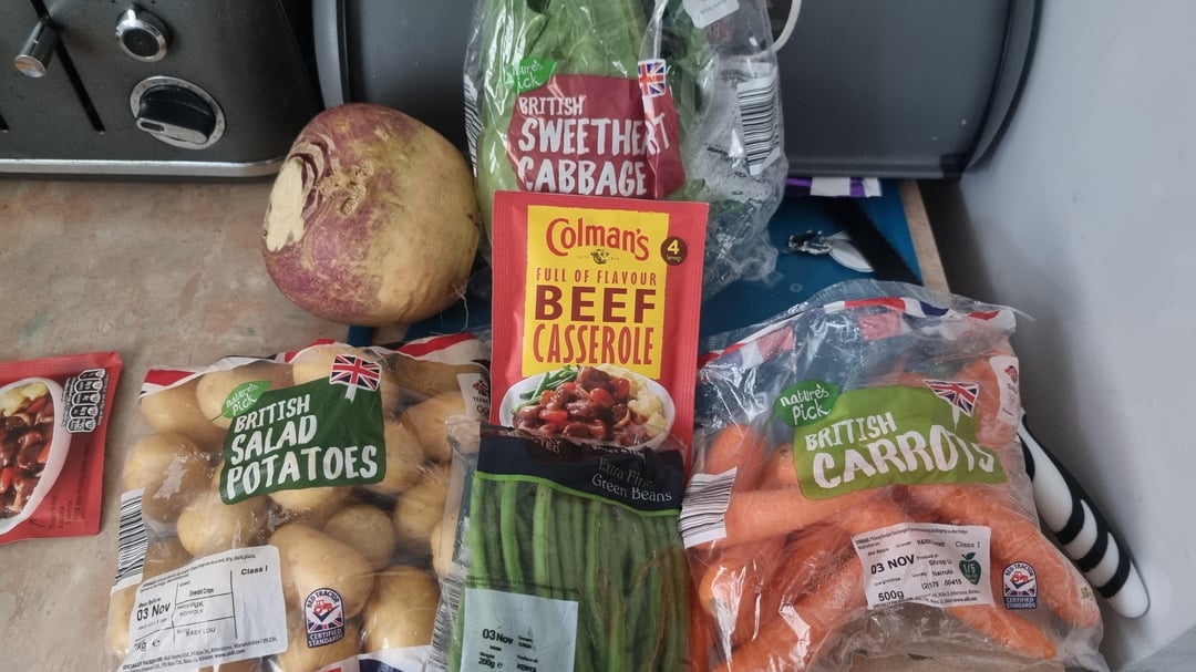 Drain out the water from the pan and measure it out to 900ml. Mix the water with 2x packets of beef casserole mix and add back into the pan.