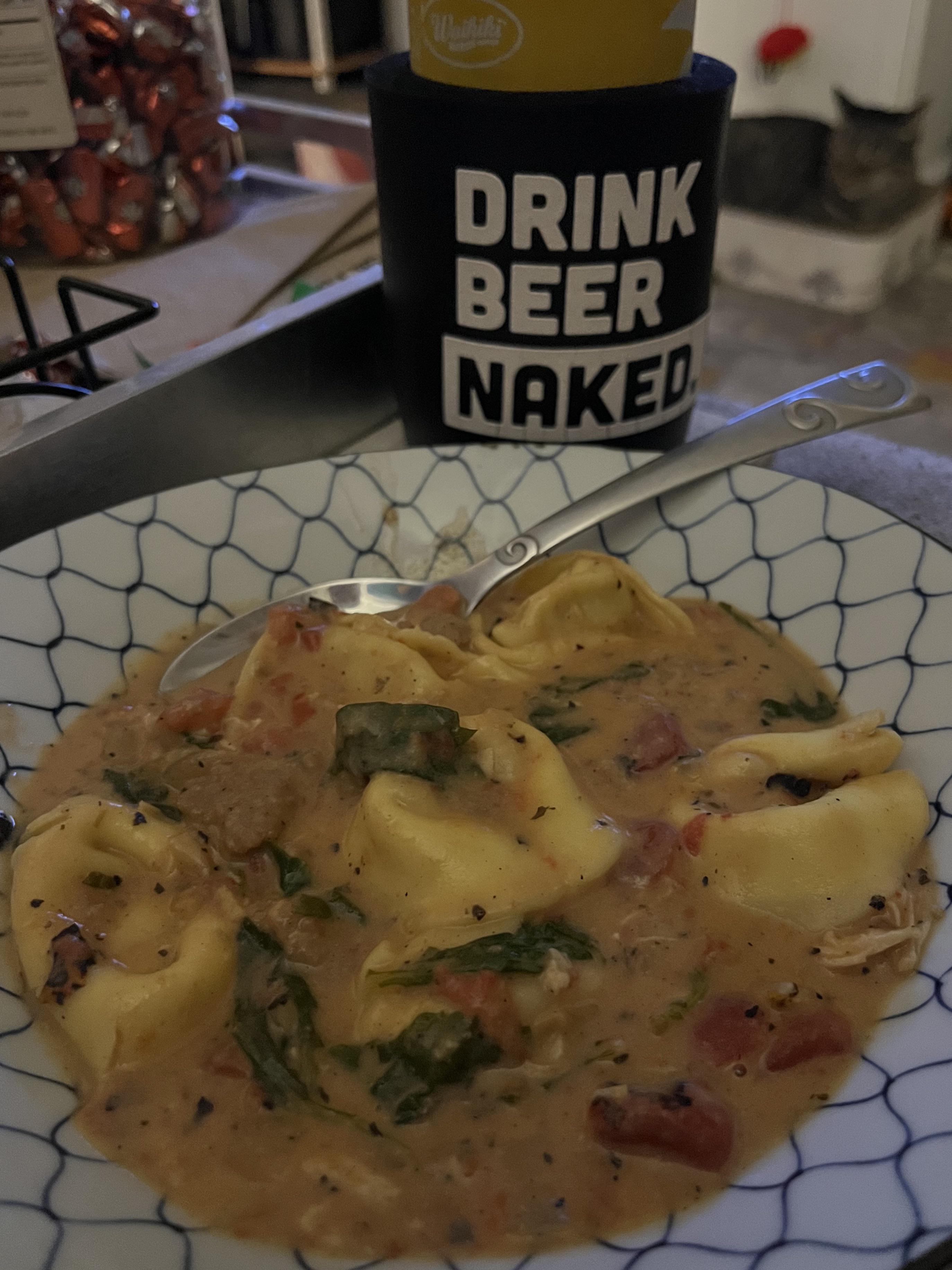 Chicken thighs and Italian style turkey sausage, also subbed baby kale instead of spinach and roasted canned tomatoes over diced style. The Soup is indeed versatile and tasty in every time zone.