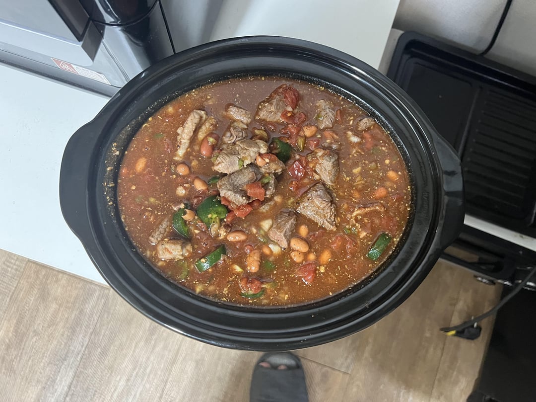 When it’s cold, make chili.. I subbed the ground beef for stew meat, added sliced jalapeños and a couple slices of bacon.. forgot to take a picture of the pot after it was done tho..