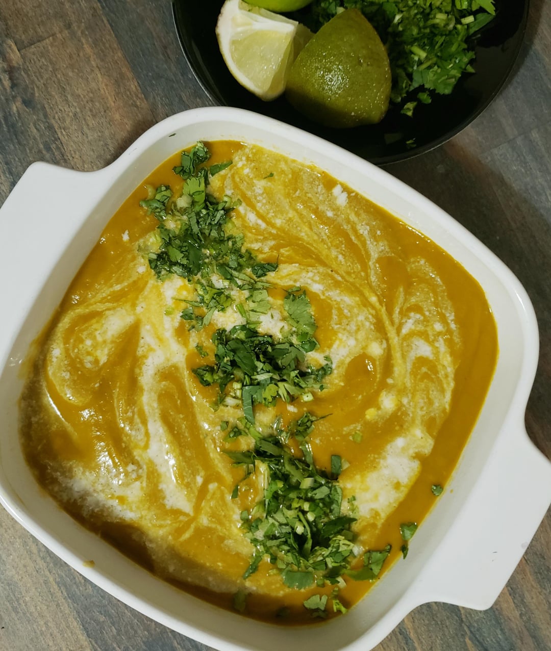 coconut red curry sweet potato carrot soup. sooo comforting!