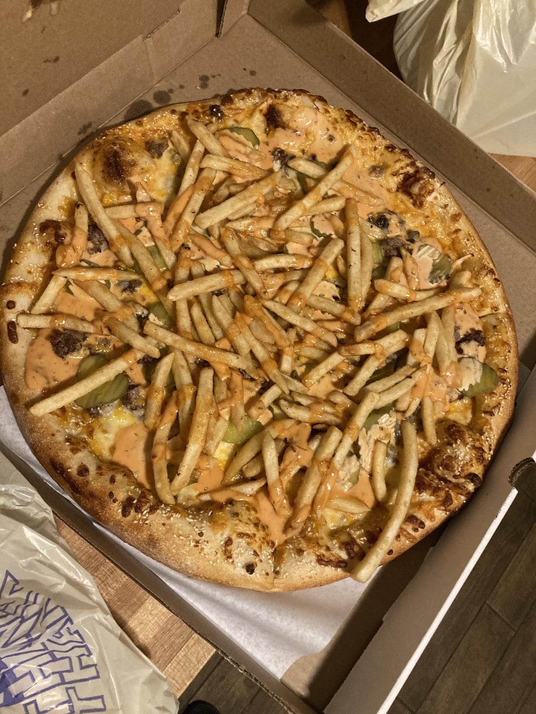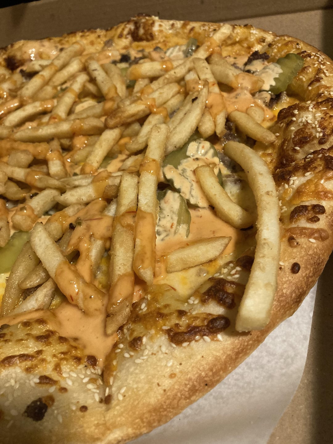 I had a big Mac pizza in Boston and was one of the best pizzas ever! No fries though. I want fries next time for sure.