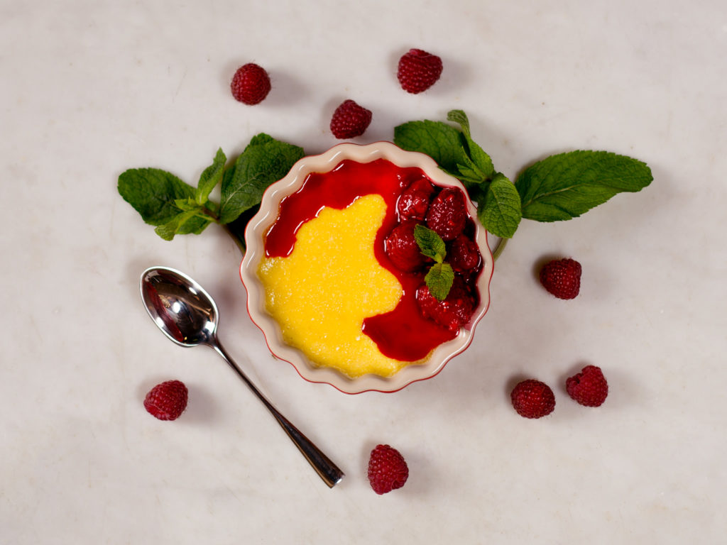 To finish, dissolve cornstarch in a bit of water and carefully stir into raspberry sauce until thickened to desire. Serve on top of hot or cold vanilla pudding and enjoy.