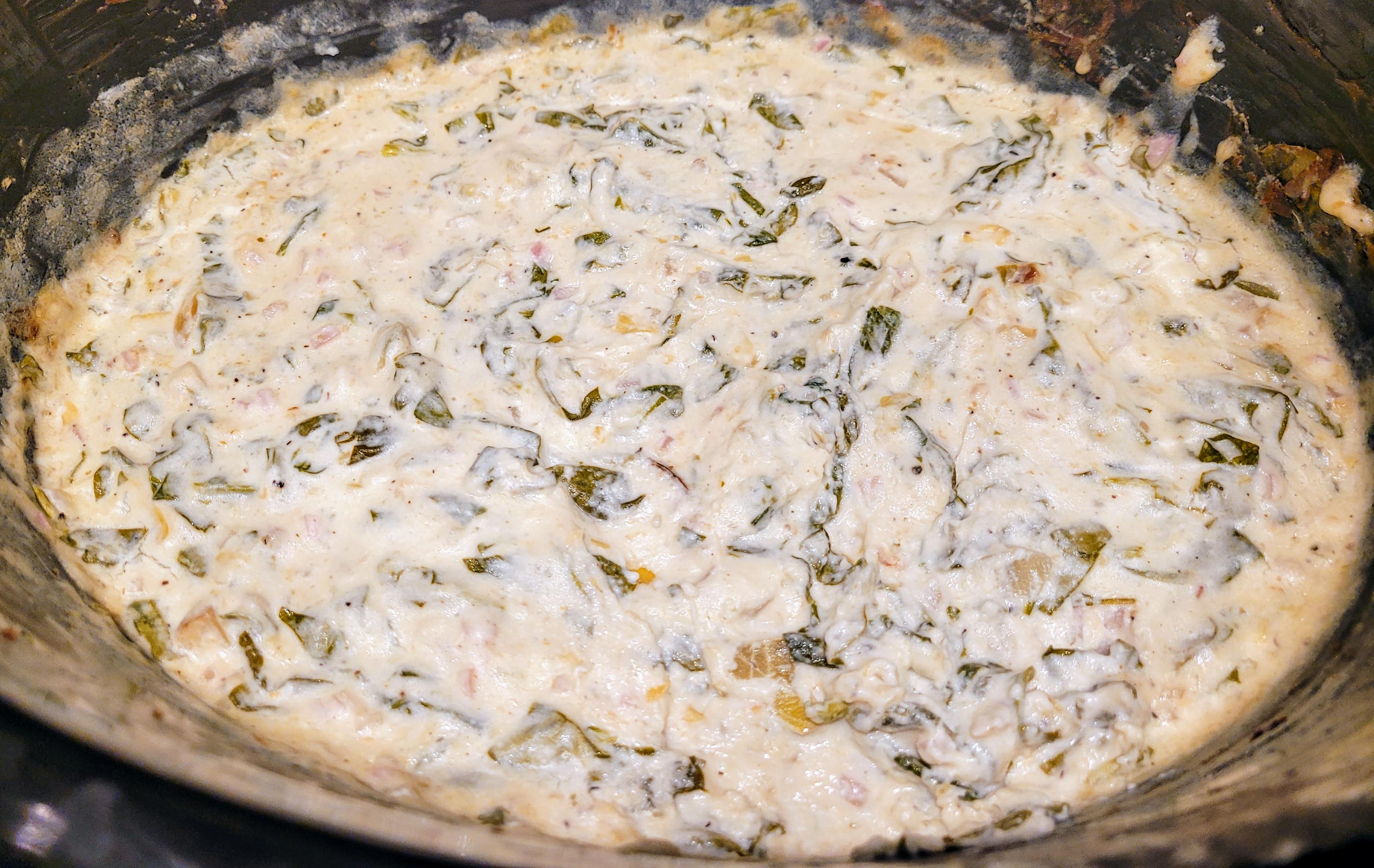 Used this recipe https://www.gimmesomeoven.com/slow-cooker-spinach-artichoke-dip/print-recipe/64040/