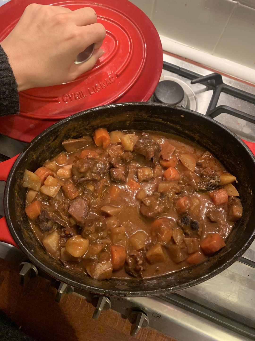 The recipe says to bake the stew for 1h45 in the oven, but I let it cook on the stovetop for a few hours. I know there are also tooooons of crockpot recipes for beef stew, but I decided once again to use my Dutch oven because it’s just slightly bigger than my crockpot.