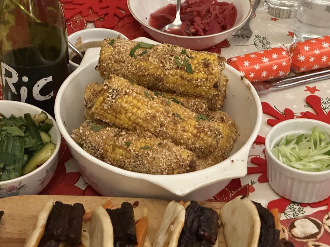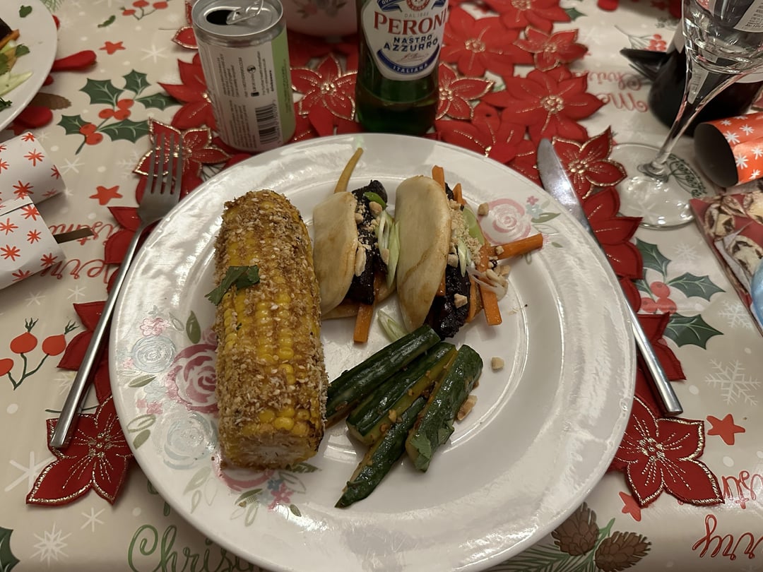 Lone_Star_Engineer 3 years ago Starter: Curry Sweet Potato Korokke with pickled onionsMain: Gua Bao (Taiwanese Pork Belly Buns)Sides: Smashed Cucumber Salad and Miso Butter Corn on the CobDessert: Orange Tart