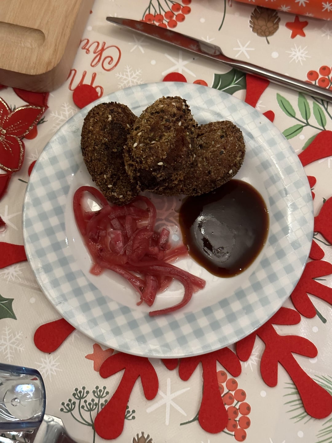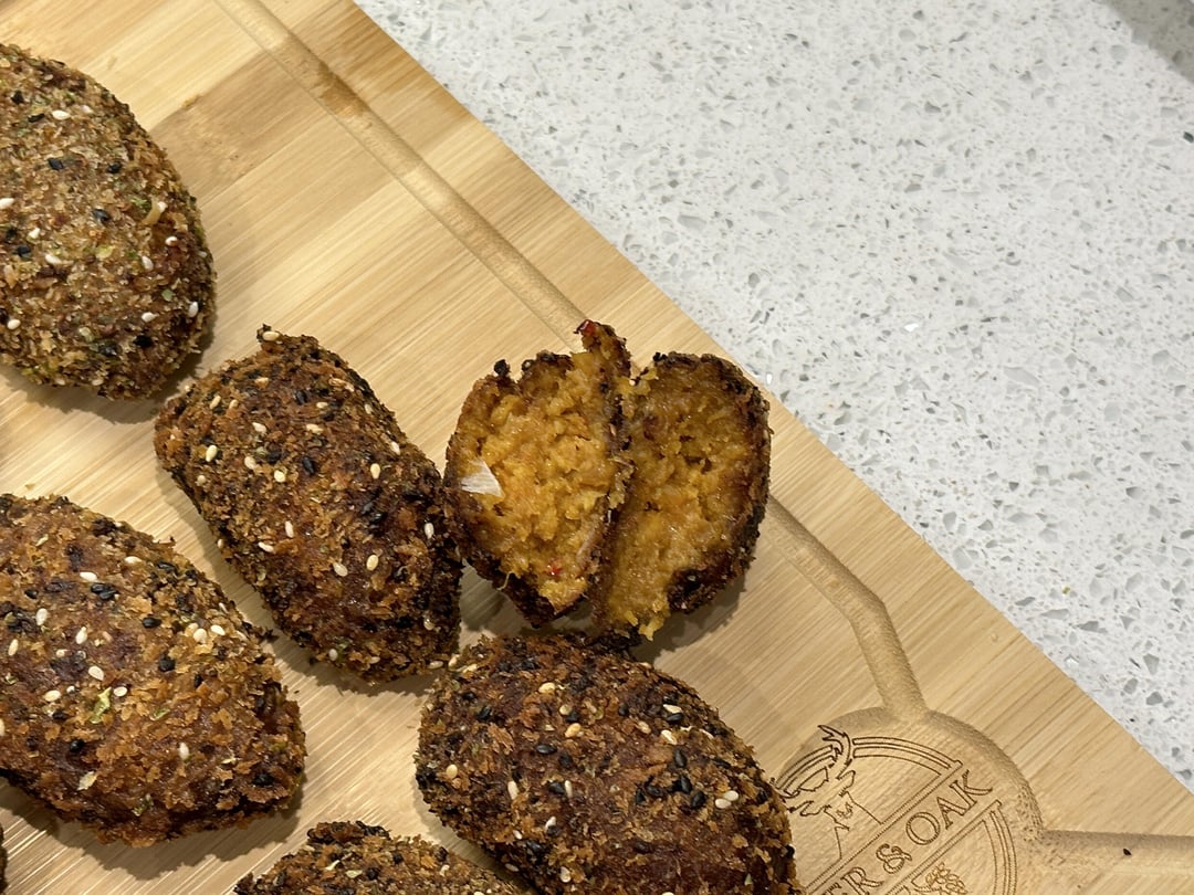 Starter: Curry Sweet Potato Korokke with pickled onions