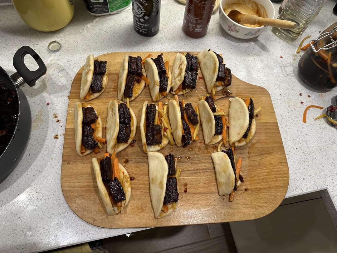 First time making Bao at the weekend. by Lone_Star_Engineer 1 Comment Lone_Star_Engineer 3 years ago Starter: Curry Sweet Potato Korokke with pickled onionsMain: Gua Bao (Taiwanese Pork Belly Buns)Sides: Smashed Cucumber Salad and Miso Butter Corn on the CobDessert: Orange TartWrite A CommentYou must be logged in to post a comment.