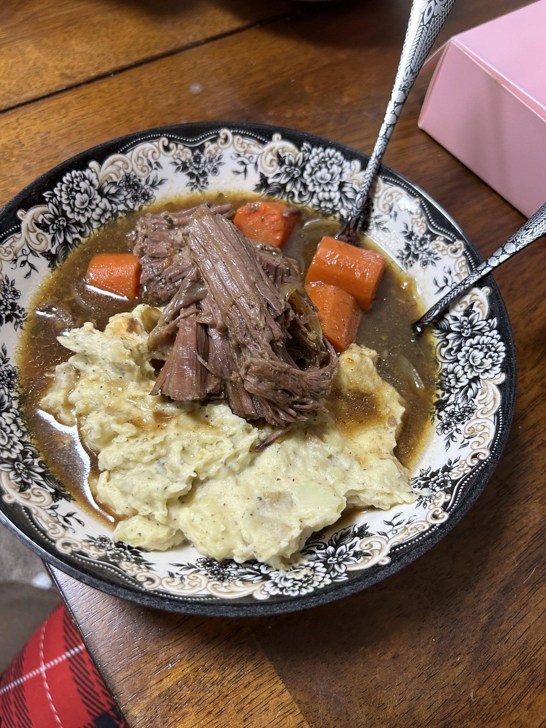 I made mashed potatoes to go with it, but the pot roast was definitely the star. This blew all my expectations out of the water, it was so good! My boyfriend said he doesn’t want pot roast any other way going forward.