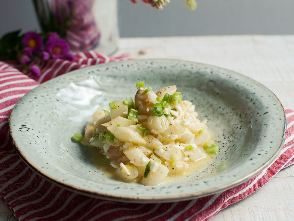 For the dressing, mix egg yolks, mustard, sugar and lemon juice together in a small bowl. Add vegetable oil in a slow and steady stream while continuously whisking until a smooth emulsion forms. Season to taste with salt and pepper.