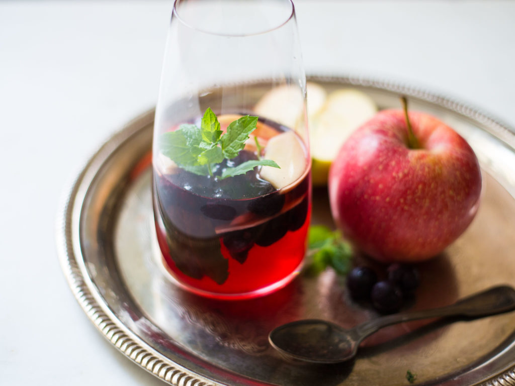 Peel, core, and quarter apple and cut into thin slices. Separate mint into individual sprigs.
