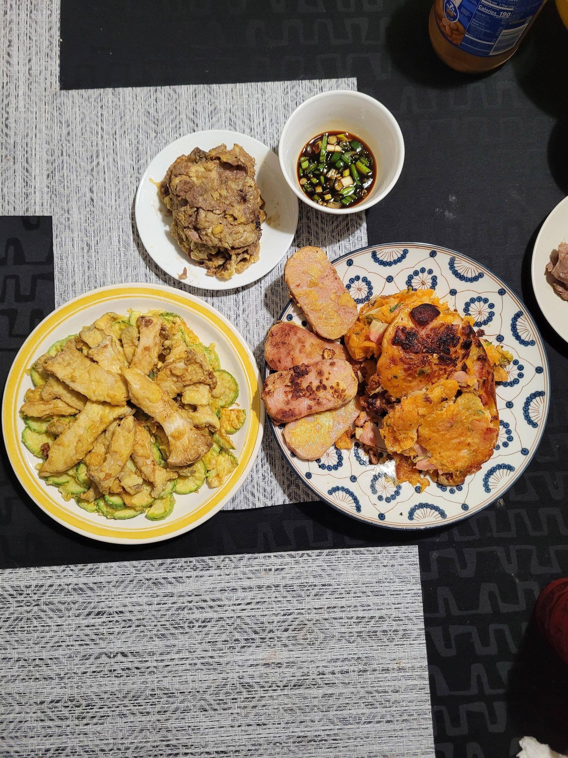 송이버섯, 애호박, 육전, 스팸, 김치 전 King oyster mushroom, zucchini, beef, spam and kimchi jeon(delicious but questionable shape).by judeinsk Write A CommentYou must be logged in to post a comment.