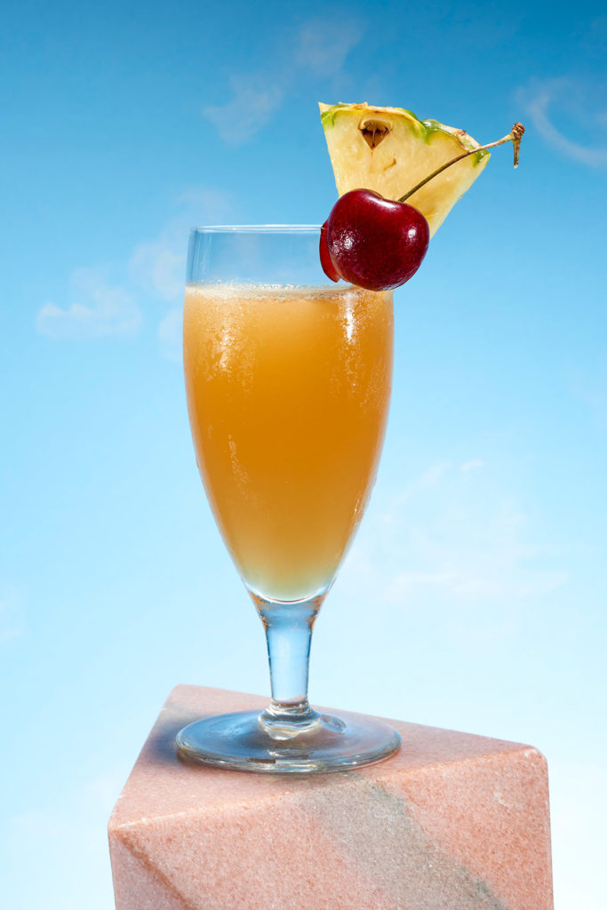 - Shake rum, lemon juice and sugar vigorously with ice. Strain into a chilled sour glass. Garnish with a piece of pineapple and a cherry.