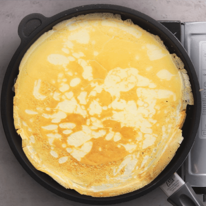 4. In a pan add few drops of oil and pour in pancake mixture to only cover the bottom of the pan.