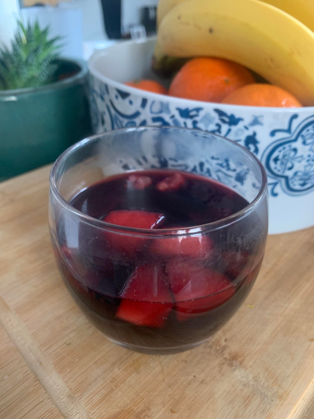 If you’re not a big fan of hibiscus, you can substitute apple juice/cider, or do half quantities of both. Pear juice/cider would probably also work well.