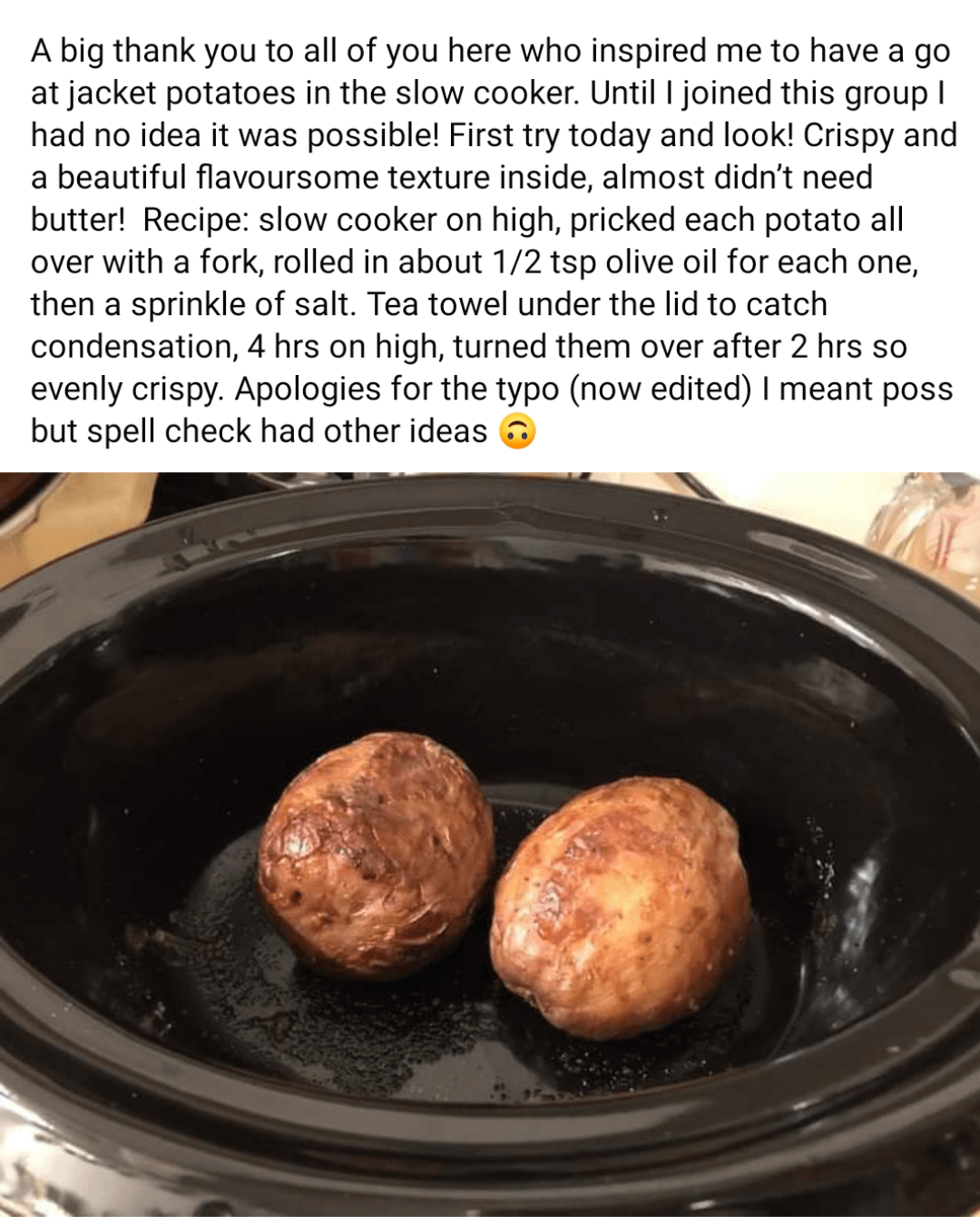 Has anyone here tried baked potatoes in a slow cooker?