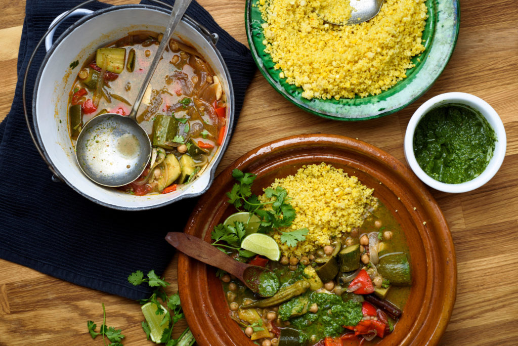 - To serve, ladle stew (with plenty of broth) into large wide bowls or deep plates. Nestle a large spoonful of couscous on the side. Pass the spicy pesto separately, telling everyone to add pesto to taste.
