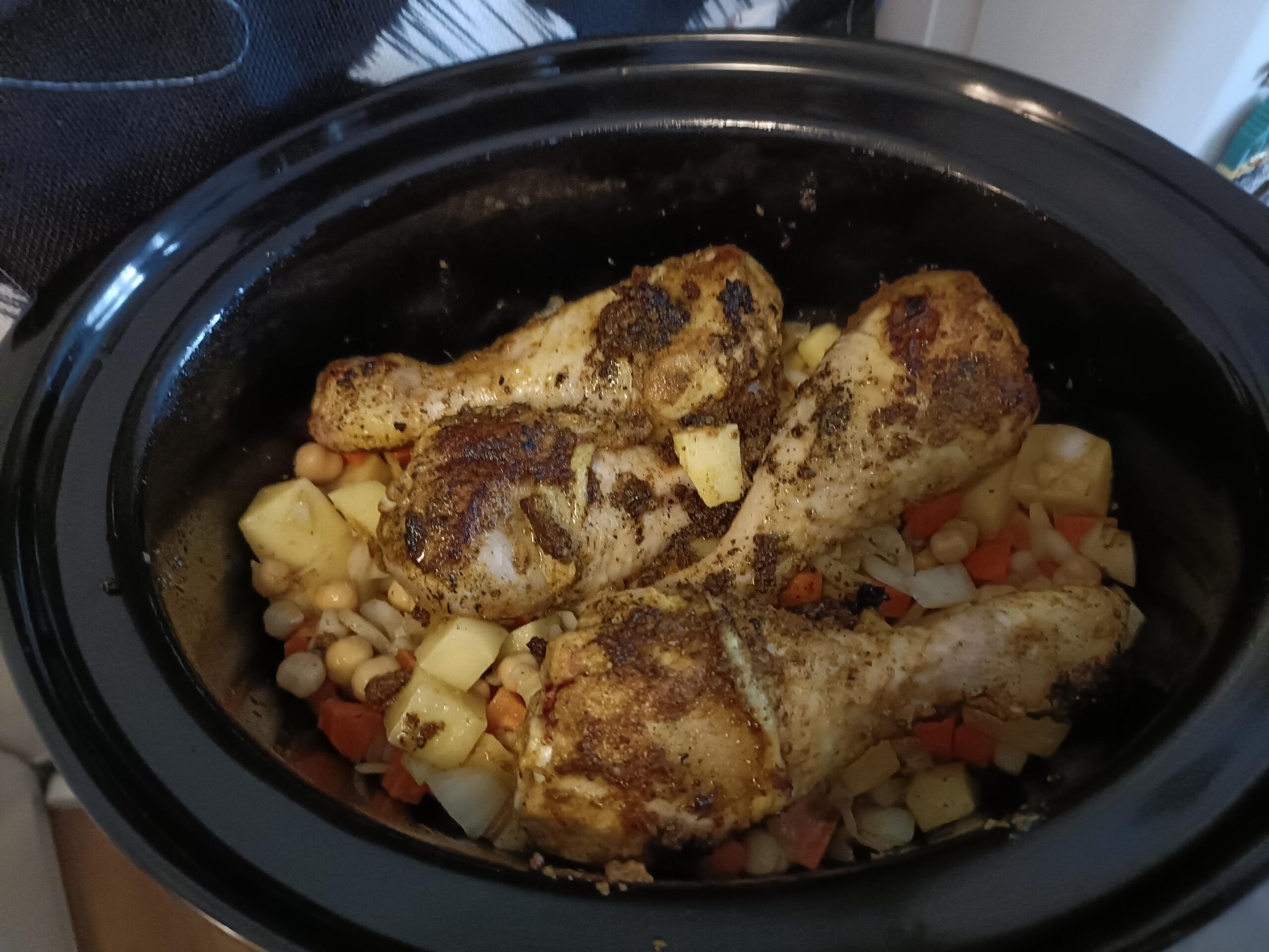 -marinate chicken legs in Ras el Hanout, minced garlic, salt, pepper and some sunflower oil.