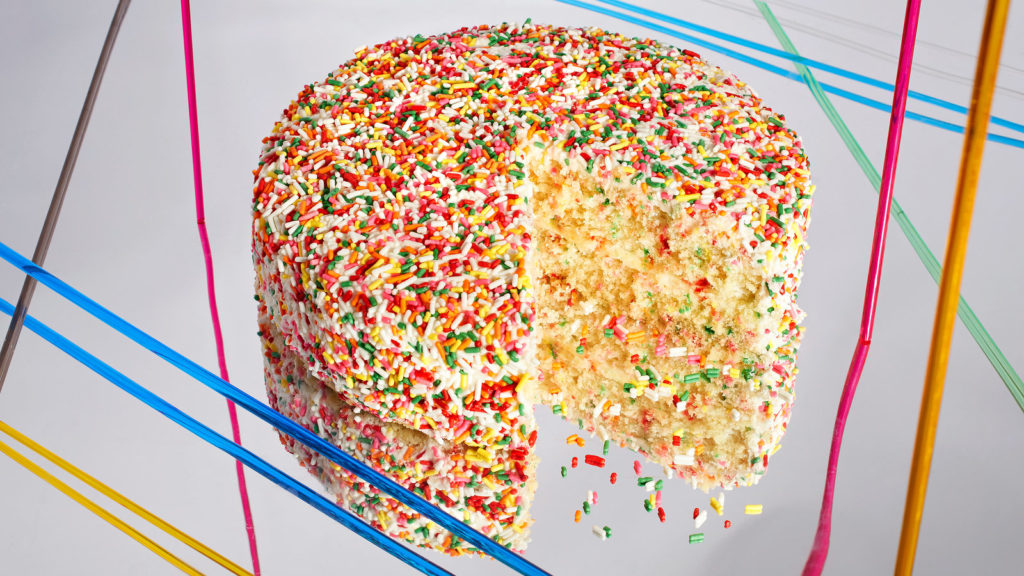 In the 1990s, when home bakers started putting rainbow sprinkles in their cakes, as well as on their cakes, the Funfetti craze was born. Pillsbury introduced its Funfetti cake mix in 1989, and the idea was quickly adopted by home cooks for waffles, pancakes and cupcakes. Now, as seen on photo-friendly social media sites like Instagram and Pinterest, rainbow sprinkles are decorating everything from morning smoothie bowls to late-night martinis. But the Funfetti layer cake is still the most fun. You can buy premixed rainbow sprinkles, but professionals mix their own to get just the right color combination. (Coming up with a signature “house blend” is a good Saturday morning project for kids.) And though it may be tempting, do not use any sprinkles made with natural colorings in the cake — they fade away, instead of leaving beautiful streaks of color.