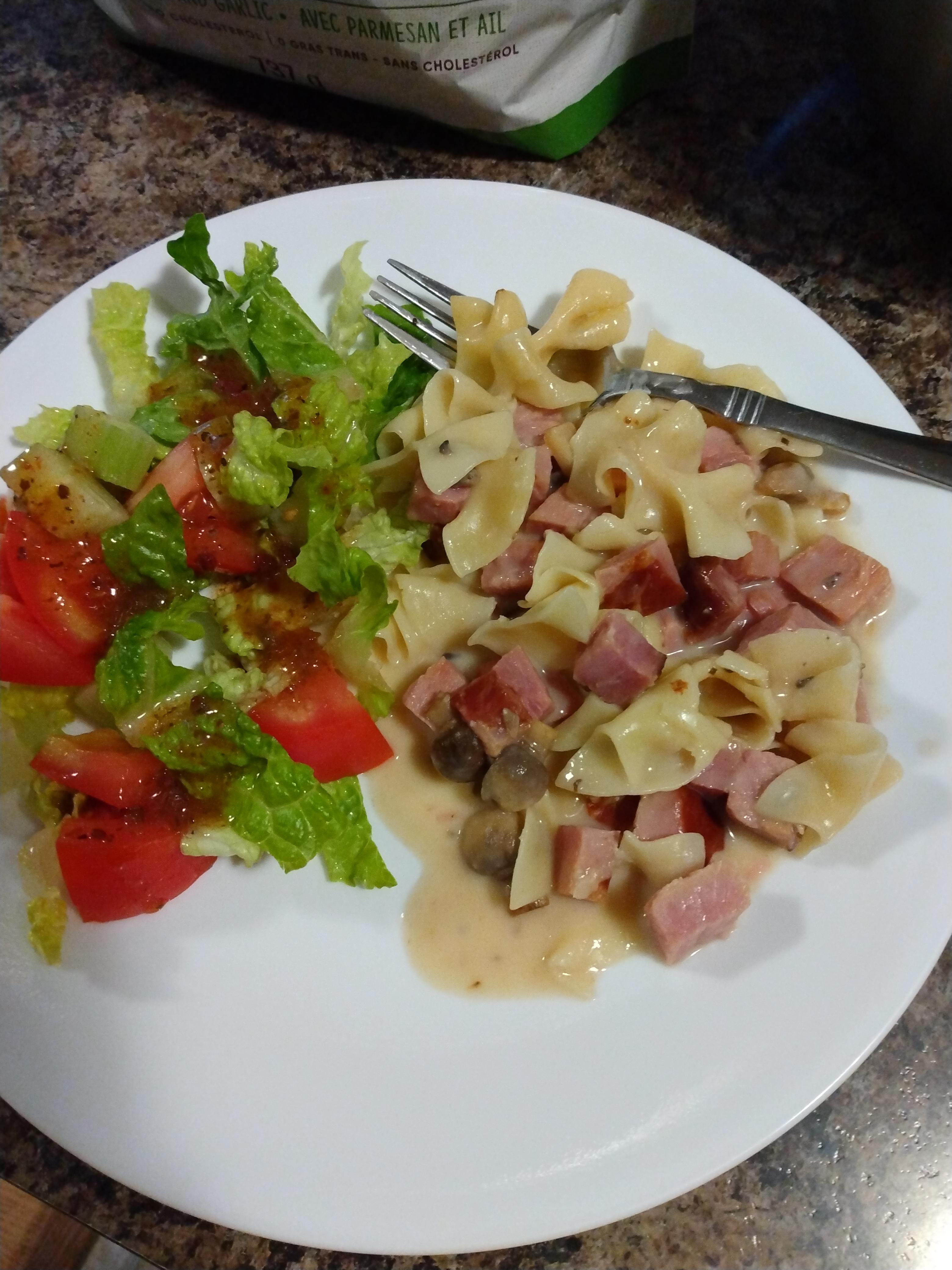 Ham and Noodlesby Ouch-MyBack 1 Comment Ouch-MyBack 3 years ago Company’s Coming cookbook by Jean Pare.1 1/2 cups cooked hamcan of mushrooms (I used fresh)Can of cream of mushroom soup1/2 cup water1 1/2 tsp horseradish1/4 cup Parmesan2 Tbsp SherryCook 6-8 hrs on low, 3-4 on high20 minutes before serving add:2 cups broad egg noodles1 cup water———Delicious! I thought the ingredients were strange but it was super tasty. Even the teenagers liked it.Write A CommentYou must be logged in to post a comment.