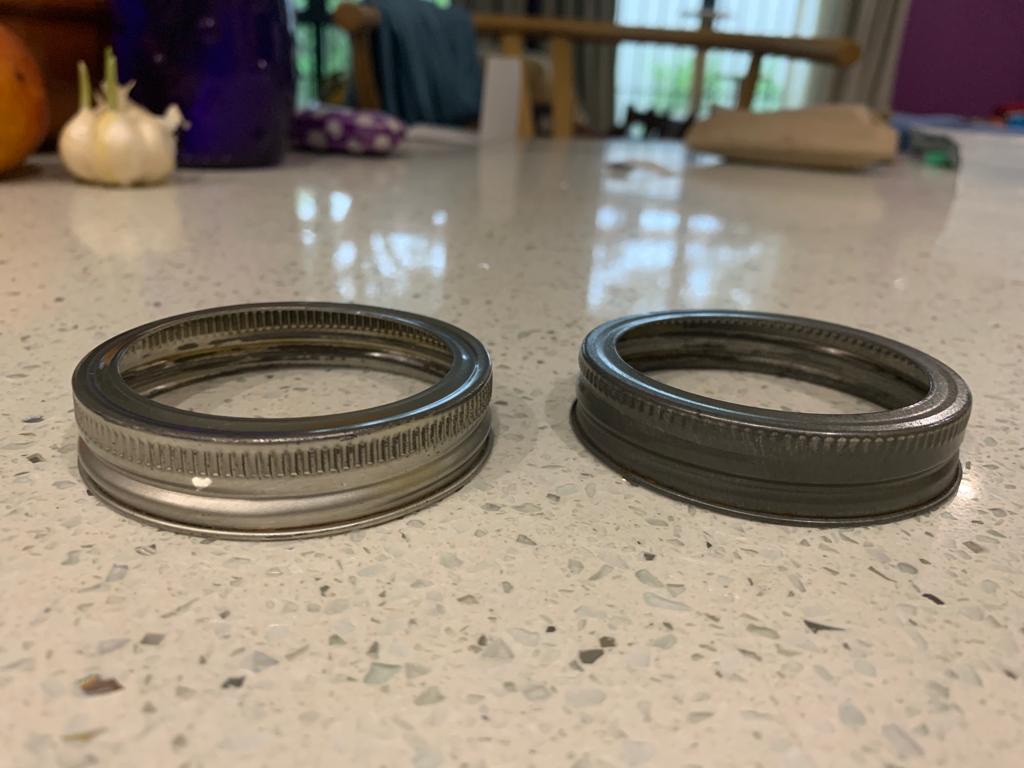 Normal part of processing. I found processing meats does seem to discolor them more. As long as you can easily put them on a hat, they are still usable. When they are no longer usable then you can recycle or upcycle them. Pinterest has a lot of cute projects to do with old rings.