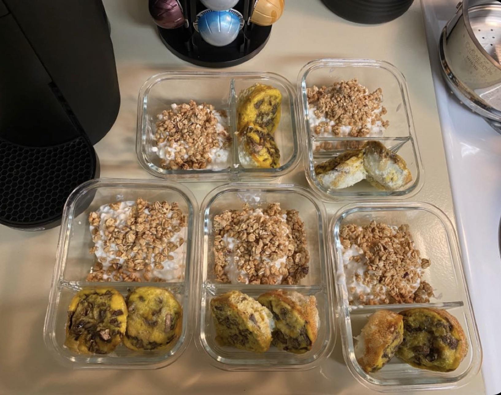 Egg bites: 10 eggs baked in cupcake tin at 350 for 15 minutes 2 ounces diced mushrooms 2 ounces cheddar cheese Salt and pepper to taste
