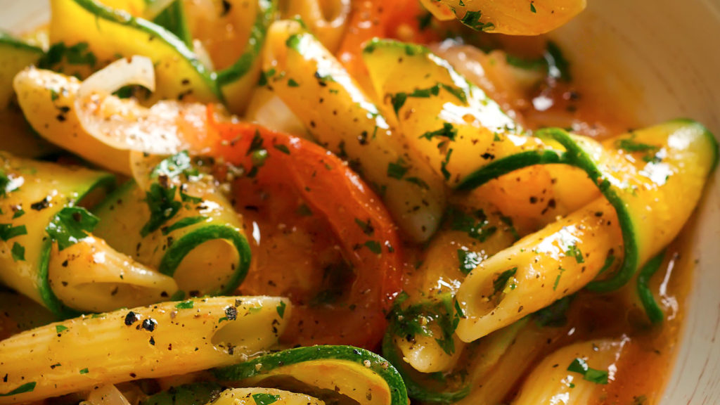 Zucchini Pasta. Freshly grated Parmesan or freshly chopped parsley for garnish.