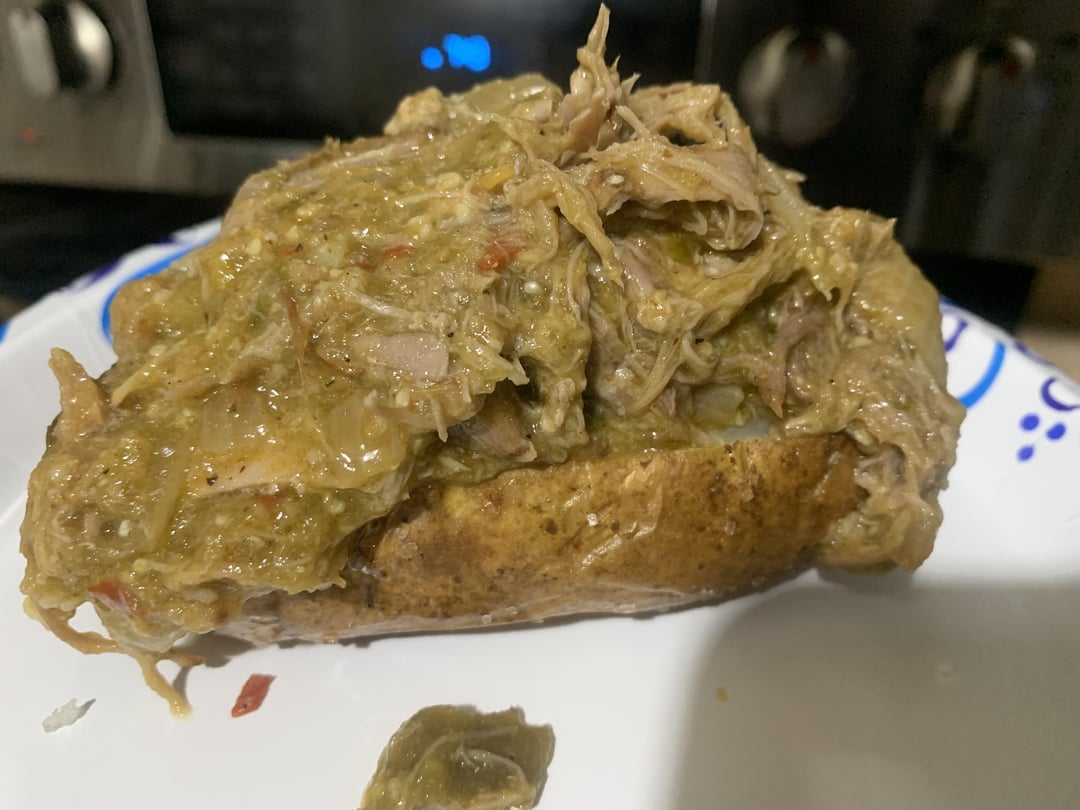 Poured over a crispy baked potato because my kids were skeptical of green food. They absolutely loved it.