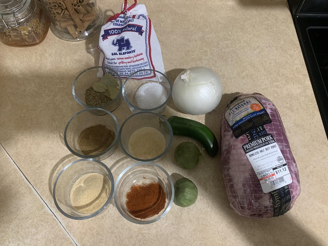 I seasoned two pork shoulders with Sal de Elephante (she insisted on this specific salt), garlic powder, onion powder, paprika, cumin, oregano, and fresh cracked pepper. Seared a nice crust and dropped them in the slow cooker on low for 10 hours. I woke up at 3 am to make this dinner. But it was so worth it.