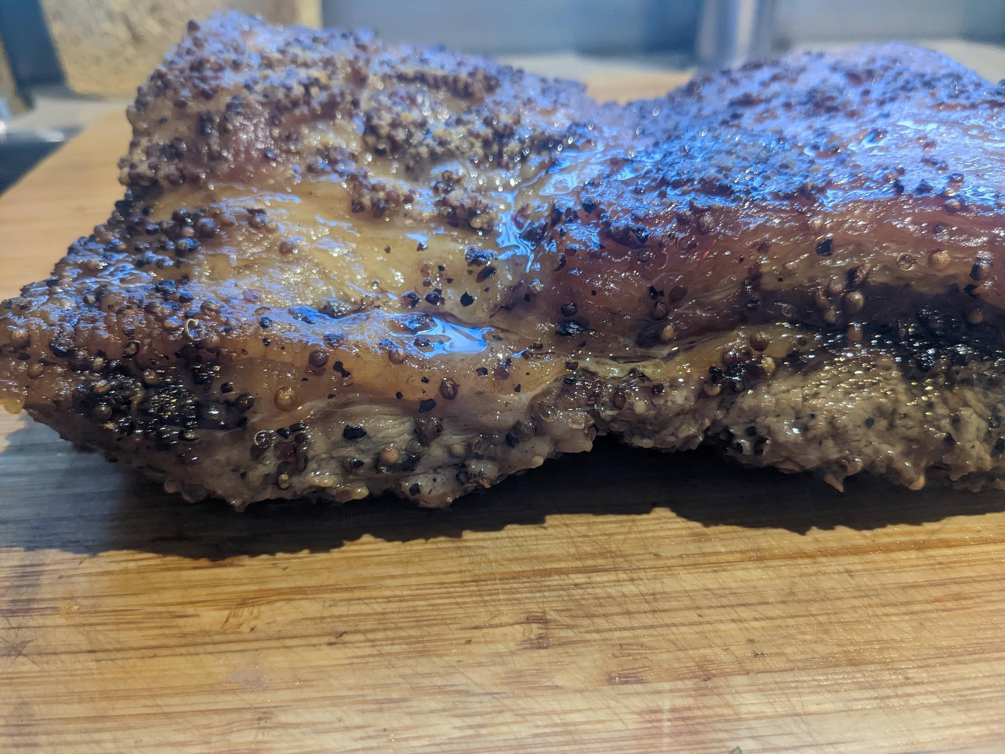 What the!? Why is you husband allergic to seasoning? This is the saddest brisket I have ever seen.