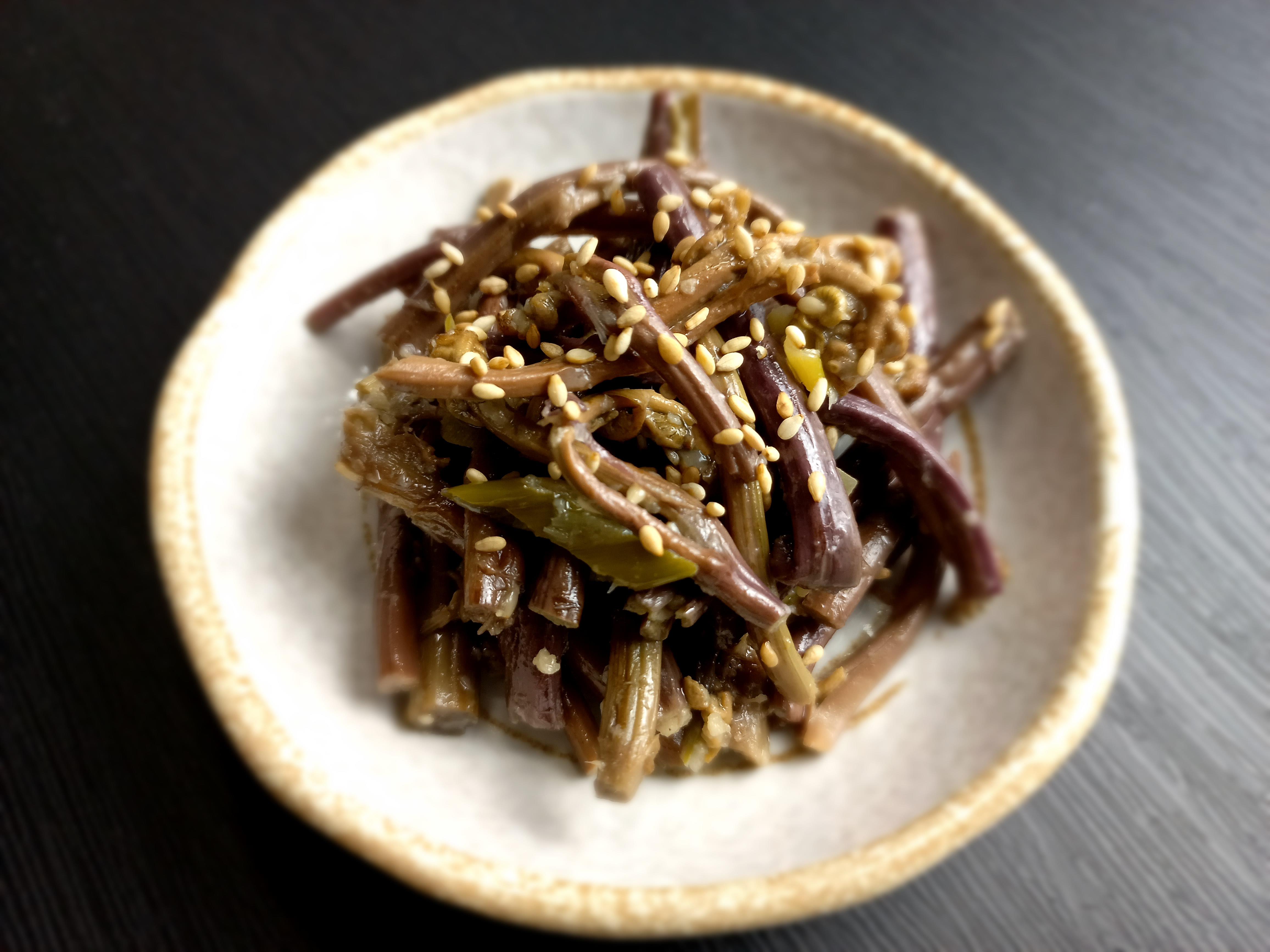 Gosari namul – 500g rehydrated gosari (fernbrake) – 1 tbsp minced garlic – half a stalk of green onion – 2 tbsp soy sauce – 2 tbsp sesame oil – pinch of salt
