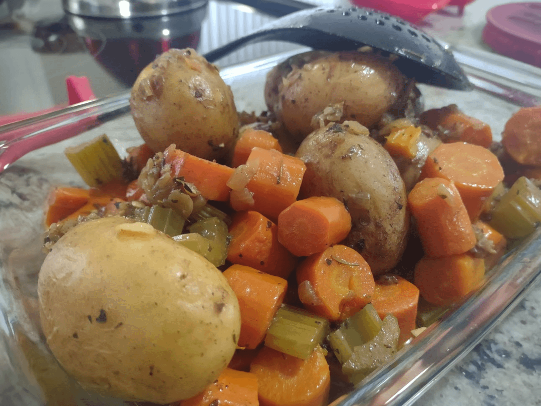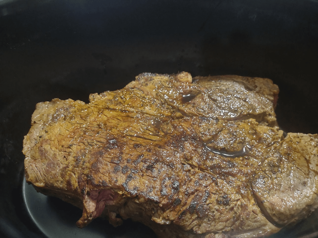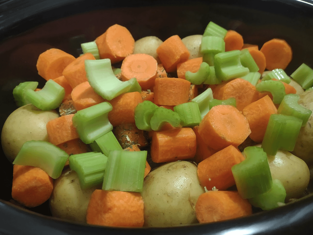 Start off with seasoning the meat with salt, pepper, and smoked paprika. Add your favorite, I used grapeseed, oil to a pan and bring to a medium heat. Brown all sides of the roast. Remove the roast and place in a crockpot. Add in a diced onion and some red wine to the same skillet. When the onions begin to caramelize add in some minced garlic. Heat for a few more minutes then add the onion and garlic to the top of the roast in the crockpot. Add in your favorite seasonings such as thyme, oregano, rosemary, and basil. I don’t measure, just make sure to add enough. Pour some beef stock (not broth) on the side of the crockpot, don’t pour it directly over the meat. Add enough stock so it reaches the top of the roast but doesn’t completely submerge it. Add some worcestershire sauce. Add in the potatoes, carrots, and celery on top. Close the lid, set it on low, try to forget about it for the next six hours.