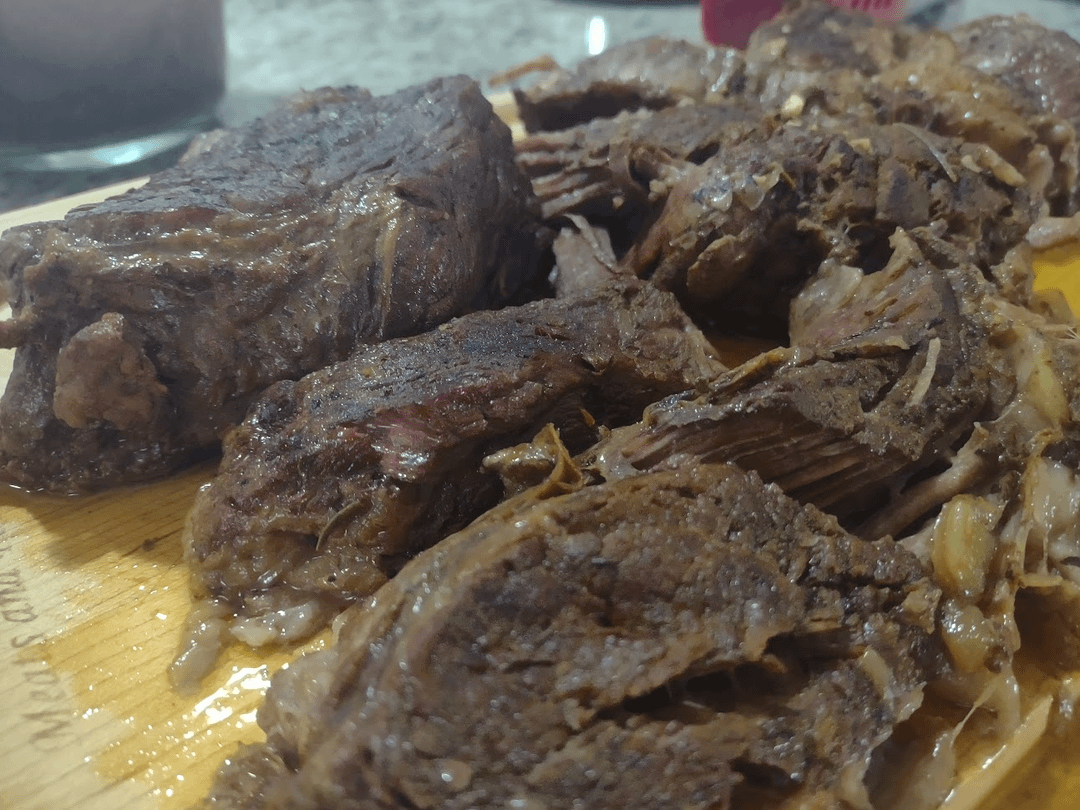 Six hour pot roast! Six hours is all it took to get this roast to be mouth watering delicious. Knives were not needed here, it was able to shred apart with a fork. Will post my full recipe in the comments.