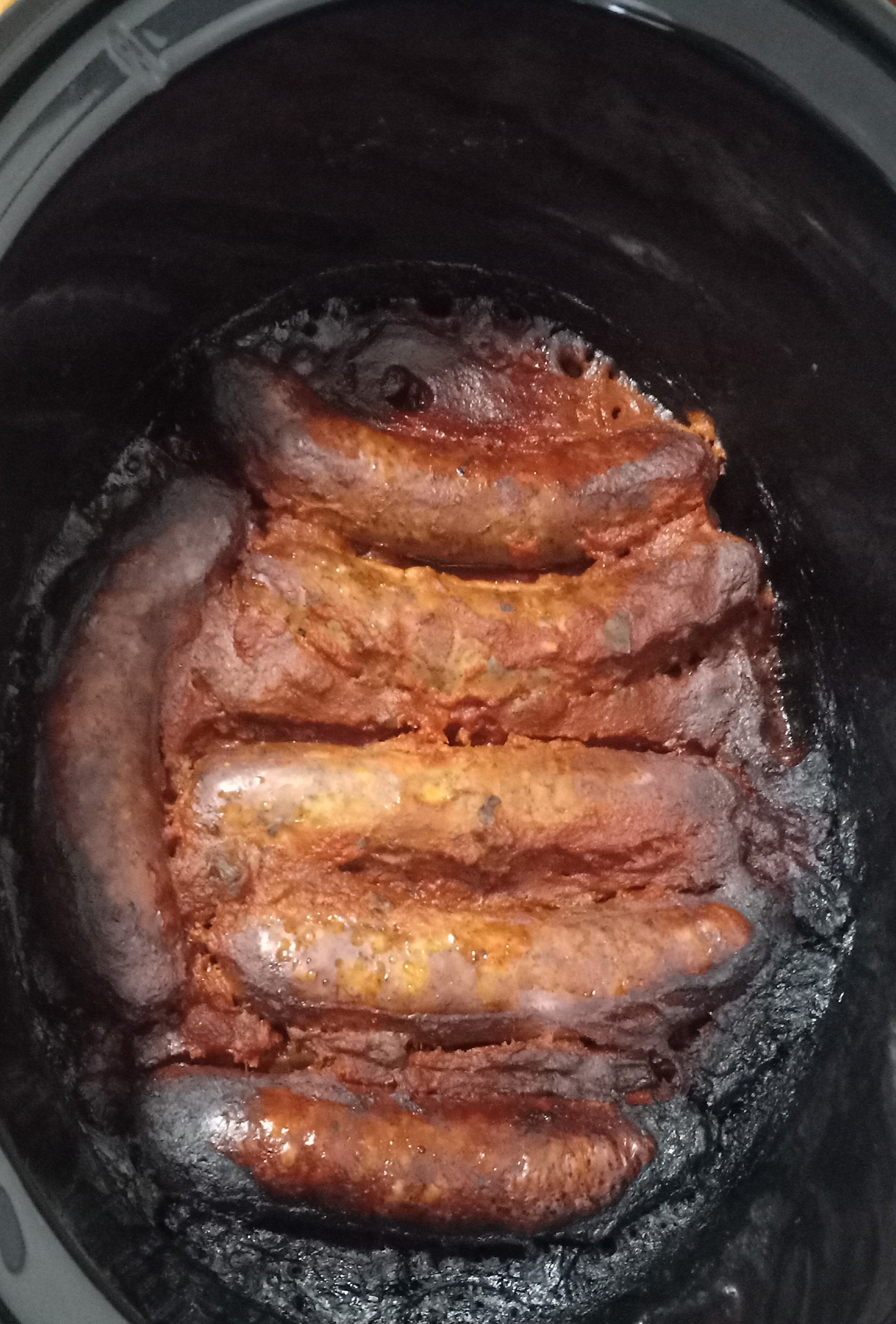 I also have to wonder why on earth you’d slow cook sausages. That’s almost the same as slow cooking hamburgers. (In the sense that both are ground meat intended for quick cooking.)